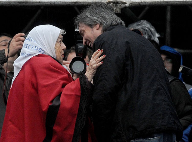 Luego de una década sin realizarse, la "Marcha de la Resistencia" encabezada por Bonfini reunió a varios cientos de personas en Plaza de Mayo el último viernes a las 17.00 y culminó, tras una vigilia, este sábado con fuertes críticas al presidente Mauricio Macri y a su política económica."Vamos a hacer unas cuantas marchas más. Me encanta preparar marchas y si jodo a unos cuantos, más", expresó la presidenta de Madres de Plaza de Mayo durante su discurso ante un público que alzaba banderas con leyendas como "Cristina conducción", en alusión a la expresidenta Cristina Kirchner.Tras repasar la consigna de la movilización ("Por el derecho a trabajar, resistir sin descansar"), Bonafini pidió a quienes concurrieron a Plaza de Mayo "pensar mucho cuántos compañeros sin trabajo, qué se puede hacer por ellos" y sostuvo que "hay que armar grupos de solidaridad, llenar las plazas, decir aquí estamos compañeros"."Doce años de felicidad me hicieron pensar que no iba a volver a esta marcha. Desde que asumió este salvaje de Macri me puse a pensar que van a hacer falta varias marchas de la resistencia", expresó la presidenta de Madres de Plaza de Mayo.En el párrafo más duro de su discurso, la dirigente kirchnerista le apuntó directamente a Macri y afirmó: "Sé que esta noche no vas a poder dormir y que te van a llenar la cabeza de que te queremos sacar. Pero te vas a caer solo, hijo de puta".Pese a haber encabezado la movilización, el discurso de Bonafini fue el anteúltimo de la jornada, dado que el cierre le fue reservado a Máximo Kirchner, quien antes de empezar a hablar arengó al público: "¡Canten que no les gusta verlos cantar, no les gusta verlos contentos!".El hijo de la expresidenta sostuvo que "esta marcha vuelve hoy porque los medios vuelven a callar lo que está pasando" y cuestionó a Macri por "acusar a los trabajadores argentinos de poner palos en la rueda", al tiempo que opinó que "en vez de tener un plan de gobierno para el pueblo tiene un plan de negocios para las internacionales"."Llama la atención que califiquen una movilización como un plan subversivo", sostuvo el diputado y agregó: "A nosotros nos cortaron 200 rutas, festejaron a la policía cuando se levantaba, festejaban los saqueos, incentivaban los cacerolazos y ahora quieren hacerle creer a la sociedad que ellos son las víctimas. Que se queden tranquilos que nosotros somos democráticos".Durante su discurso, Kirchner recordó varias veces a la expresidenta y en uno de esos tramos evaluó que la política económica del Gobierno "va por los derechos de los trabajadores, y se los dijo Cristina incontables cantidad de veces".En este sentido, recordó el último discurso de Cristina Kirchner antes de dejar la Presidencia y agregó: "Si alguno quiere saber por qué pasa hoy lo que está pasando le recomiendo que escuche el discurso de ese 9 de diciembre"."No puede más que darle bronca a algunos que estén por ahí cómo les mintieron. Hay que ir a buscarlos, no tienen que seguir mascando bronca. Les mostraron la zanahoria de las ganancias y hoy tenemos el palo de la desocupación sobre la cabeza de los trabajdores", sostuvo el diputado.Otro de los discursos del acto de cierre lo pronunció el exministro de Defensa Agustín Rossi, quien rechazó que el kirchnerismo "aliente" la protesta social para "tapar" las denuncias por presunta corrupción contra funcionarios de la administración anterior."Es exactamente al revés: el Gobierno lleva adelante denuncias de corrupción contra el kirchnerismo para tapar la protesta social que brota de cada uno de los poros de la Argentina", manifestó Rossi, quien advirtió que se intenta "instalar que en la Argentina hay un intento de desestabilización para imponer el estado de sitio y suprimir garantías y derechos".Del acto también participaron el diputado Edgardo Depetri, del Frente Transversal; el líder de Nuevo Encuentro, Martín Sabbatella; y el intendente de Ensenada, Mario Secco, cuyo nombre se vio en muchas de las banderas que se alzaban entre el público.Fuente: Agencia de Noticias NA