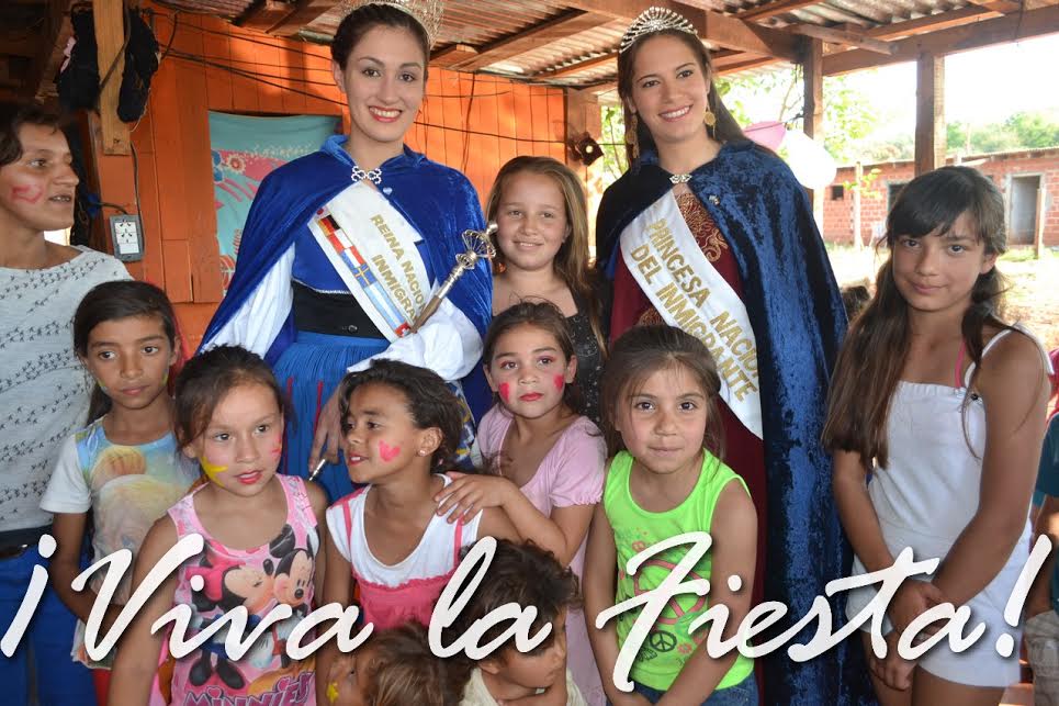El sábado, la actual Reina Nacional de los Inmigrantes, Florencia Vallejos Rosa y la princesa Macarena Damus, se acercaron a un merendero en el barrio de Tres Esquinas, donde fueron recibidos por un gran número de pequeños de todas las edades.Las inocentes miradas de asombro de los pequeños al ver a las jóvenes ataviadas con sus trajes y atributos, así como las grandes demostraciones de afecto, fueron lo más destacado de la tarde. Cada uno de ellos recibió un juguete que fue donado por la comunidad durante la campaña “Mi Reino por un juguete”.El merendero ubicado en el domicilio de doña Romina, a metros de la ruta nacional 14, fue creado bajo la órbita de Caritas y es apadrinado por el Instituto San Juan Pablo II, que esa tarde brindaban un festejo por el Día del Niño, con un rico chocolate con bollos, peloteros y payasos incluidos. La llegada de la Reina y sus princesas fue la frutilla del postre de este festejo para estos niños que nunca olvidarán este momento.“Fue hermoso ver sus ojitos brillando, los abrazos que recibimos, las fotos que nos sacamos, sus caritas cuando recibían sus regalos. Me siento feliz por haber compartido esta hermosa tarde con los chicos, es increíble el amor que ellos tienen para dar, se sintió muchísimo y me encantó poder hacerlos un poquito más felices”, expresó Macarena Damus.Por su lado, la Reina Nacional, Florencia Vallejos Rosa, expresó “fue una experiencia única, quiero agradecer a cada persona que aportó su granito de arena, que se acercó y donó un juguete para que podamos regalar a esos niños que nos devolvieron una sonrisa de oreja a oreja. Son cosas que llenan el alma, que no tienen explicación, la alegría y el amor que derrochan estos niños en cada beso, cada abrazo, cada sonrisa, es algo que no tiene precio”.La actual soberana, quien pronto entregará su corona a quien la suceda, dijo: “Ojalá todos tengamos ese espíritu de solidaridad de regalar una sonrisa, que no cuesta nada, y que siempre hay una sonrisa de vuelta”.La campaña "Mi Reino por un Juguete" comenzó en 2011 de la mano de Silvana Daniel y fue nuevamente puesta en práctica por la actual soberana nacional y sus princesas, Florencia Vallejos Rosa, Macarena Damus y Fernanda Ciechnowski Guillén.Fuente y Fotos: Prensa Federación de Colectividades