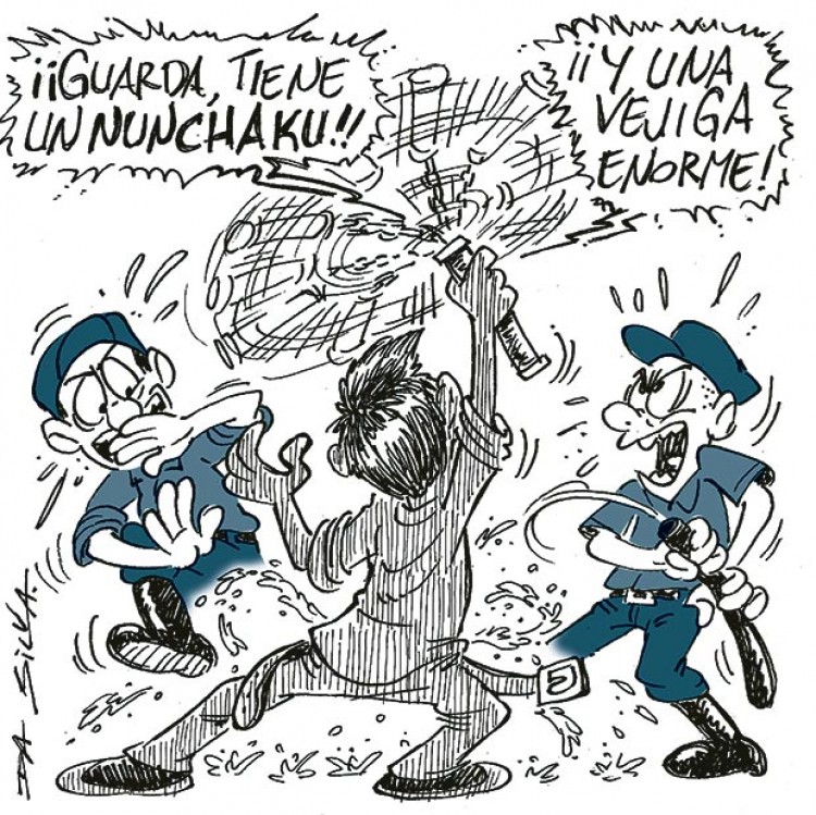 Del alivio a la furia pasó un joven de 26 años que fue sorprendido por la Policía provincial cuando orinaba en la vía pública y, lejos de calmarse, maldijo y hasta intentó agredir a los uniformados con un nunchaku.Según pudo saber PRIMERA?EDICIÓN, todo sucedió minutos después de las 15 del último lunes en el Acceso Oeste posadeño, cuando efectivos del?Comando Oeste de la UR-I notaron que un joven orinaba en plena vía pública ante la atónita mirada de un puñado de transeúntes.Como marca la ley, los uniformados le advirtieron al irascible que no podía satisfacer sus necesidades fisiológicas en un lugar público, al aire libre. “Pero la c… de tu hermana, ahora ni mear se puede porque ustedes rompen las bolas”, lanzó el sujeto de manera sorpresiva. Los policías insistieron y le explicaron que sólo intentaban hacer cumplir con lo estipulado en el Código de Faltas de la Provincia de Misiones. La respuesta del joven fue aún peor:?“A mí qué carajo me importa tu código de Misiones, si yo soy de El Calafate”, lanzó, decidido a “comprarse todos los números”.Los efectivos enseguida le solicitaron el DNI. Allí confirmaron que efectivamente tenía domicilio en Santa Cruz. Pero faltaba más. Cuando le pidieron los papeles del Peugeot 206 en el que se movía, el irascible fue hasta el rodado y se bajó con un nunchaku, un arma oriental conformado por dos bastones de madera unidos por una cadena.Con ese elemento intentó atacar a los policías, que rápidamente lo esposaron y llevaron a la comisaría más cercana, donde quedó a disposición de la Justicia. Al menos allí pudo darse el gusto de -finalmente- cumplir con el llamado de la naturaleza.