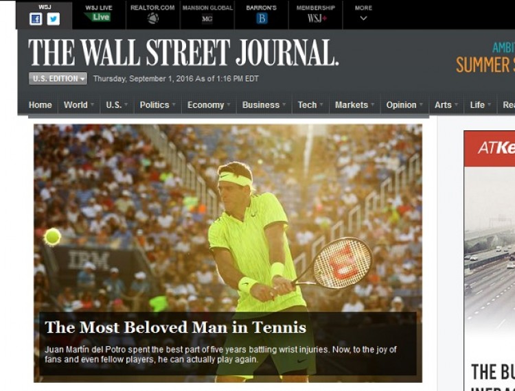 Juan Martín Del Potro es el hombre del momento en el mundo del tenis, luego de escribir una página que será recordada por largos años en los últimos Juegos Olímpicos. Su batalla contra las lesiones generó un acercamiento inesperado con el público, a tal punto de ser catalogado como el "más amado" del circuito.El diario estadounidense The Wall Street Journal escribió una extensa columna contando las peripecias que debió afrontar el hombre de Tandil luego de someterse a tres cirugías en la muñeca izquierda. "El hombre más amado del tenis", es el título de la columna que firmó el periodista Tom Perrotta.Los casi dos metros del argentino no pasan inadvertidos para el cronista, quien asegura que logra poner nerviosos a los presentes con su contextura física pero remarca que tiene "el corazón de un golden retriever". Su conclusión es tajante: "En el mundo del tenis todos lo aman".Los vaivenes en la relación entre "Delpo" y el mundo del tenis quedaron en el pasado durante los Juegos de Río de Janeiro, cuando emocionó con su entrega a pocas semanas de retornar al circuito y consiguió llevarse la medalla plateada. "Estoy muy orgulloso, porque creo que admiran lo que he pasado para llegar hasta acá", replican las palabras del argentino en el medio.El mismo sitio que lo vio convertirse en una celebridad en 2009 tras conseguir el título, lo tiene de vuelta gracias a una invitación especial: triunfó en el debut contra su compatriota Diego Schwartzman. "Lo mejor de todo: ya no tiene miedo de decir que se está empezando a sentir como el mismo tipo que ganó este título", remarcan en el diario de Nueva York.El cambio de juego de la Torre de Tandil también llamó la atención: una derecha que no perdió el fuego sagrado se fusiona con un revés que debió ajustar para ponerlo a tono con un perfil castigado por las operaciones. "Es un jugador inteligente. También más paciente", detallan."Todos esperan que esté de vuelta para siempre", se animan a destacar desde las líneas escritas a modo de alabanza para el hombre que surgió desde las cenizas y hace emocionar al mundo del tenis en su totalidad.Fuente: Infobae