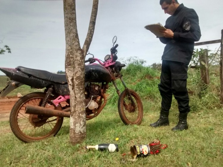 Aproximadamente a las 11:30 hs, acudieron al llamado de un vecino quien se vio asombrado al ver abandonada una moto al lado de varios elementos que formarían parte de un ritual, en un malezal situado entre el Acceso Oeste y la avenida Chacabuco.Los uniformados constataron que la moto Mondial estaba recostada a un árbol y a su alrededor había botellas de alcohol, velas, una manta y otros elementos.El parte policial informa que ante la presencia de testigos del inusual momento, se procedió al secuestro de la moto en averiguación de su procedencia.