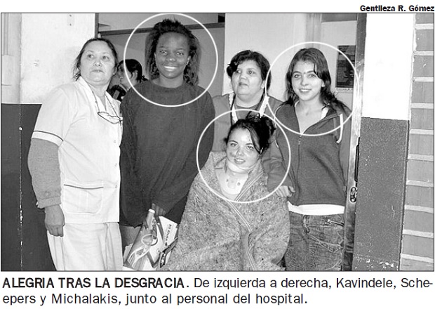 Lienda Kavindele (16), hija del ex vicepresidente de Zambia Enoch Kavindele, fue una de las sobrevivientes del <a href="http://www.primeraedicion.com.ar/nota/228933/archivos-policiales-la-tragedia-que-dejo-6-muertos-y-18-heridos-en-l.html">terrible accidente protagonizado por un colectivo de la empresa Plus Ultra y un camión en la ruta 12</a>, en el que murieron siete personas.La joven -domiciliada en la capital Lusaka- se hallaba residiendo en Córdoba hacía un año, como parte de un intercambio cultural de la fundación Chase, con sede en esa provincia, al igual que Natalie Scheepers y Eleni Michalakis, ambas de Sudáfrica. Lienda, en un breve diálogo con este diario, manifestó que tenía algunos golpes, pero se encontraba bien. La chica, en un español aceptable, dijo que no recordaba muy bien cómo ocurrió el accidente. En cambio, agradeció la atención recibida en el hospital de Puerto Rico.Durante la jornada de ayer las autoridades de la cancillería de su país tomaron contacto con la policía y los médicos del hospital, para interiorizarse de su estado.Se supo que hoy viajaría por avión a Córdoba, al igual que sus dos compañeras, de las cuales Natalie Scheepers sufrió traumatismo cervical.Recién casadosPor otra parte, en el mismo hospital se hallaba internado un matrimonio de Córdoba que disfrutaba de su luna de miel.Carlos Tello (27) y su esposa Lorena Fernández (26) contaron que viajaban en los asientos 19 y 20, es decir, de la mitad hacia atrás. Esto fue lo que los salvó de una muerte segura.El matrimonio agradeció a un automovilista solidario que llegó al lugar y los evacuó al hospital de Puerto Rico. La pareja Tello-Fernández señaló que hoy serán trasladados a Córdoba vía aérea, para continuar con su recuperación en un centro asistencial de esa provincia.Falleció otro turista y suman siete los muertosCon la muerte de otro turista de Córdoba, ascienden a siete las víctimas fatales del choque frontal entre un colectivo y un camión ocurrido el lunes en la ruta nacional12, a la altura de Colonia Luján.Fuentes policiales informaron ayer que cerca de la medianoche de ese día dejó de existir Luis Bairo Peñaloza (33), quien gozaba de su luna de miel, tras dos días de casado.En tanto, su esposa Andrea Farías (27) sobrevivió a la tragedia, aunque sufrió la amputación de una pierna. Anoche se encontraba internada en un instituto privado de Puerto Rico, en estado delicado, pero estabilizada.A todo esto, el Ministerio de Salud Pública de Misiones informó oficialmente que ayer continuaban hospitalizadas 17 personas, en hospitales públicos y centros privados de Puerto Rico, Eldorado y Posadas.De esa cantidad, sólo dos presentaban lesiones de gravedad, las otras se hallaban fuera de peligro y en condiciones de ser dadas de alta. Además de Farías, quien presentaba amputación de una pierna, una turista cordobesa, identificada como Delia Olmedo (62), se hallaba en estado reservado, con fracturas costales y traumatismo pulmonar, en terapia intensiva del hospital del SAMIC de Eldorado.Por otro lado, la empresa Plus Ultra se encargó de trasladar a los familiares de las víctimas hasta Misiones, quienes identificaron a los fallecidos y se interiorizaron del estado de salud de los heridos.De su parte, el Gobierno de Córdoba envió a esta provincia un equipo encabezado por los ministros de Salud y de Solidaridad, Oscar González y Daniel Paselini respectivamente, para ayudar a las víctimas y a sus familiares.El trágico accidente ocurrió el lunes alrededor de las 8.50 a la altura de colonia Luján, cuando un ómnibus de Plus Ultra, con 25 personas a bordo, chocó de frente contra un camión Volvo cargado de madera, al mando de Simón Lukosky (20), quien falleció en el acto. El micro llevaba jóvenes extranjeros y cordobeses a las Cataratas y habría intentado sobrepasar a dos colectivos de Vía Bariloche, en una zona peligrosa.Trasladaron los cuerpos a Córdoba por vía aéreaEl ministro de Salud de Córdoba, Oscar González, y su par de Solidaridad, Daniel Paselini, viajaron a Misiones para poner a disposición de los familiares de las víctimas los medios necesarios para trasladar a los heridos y a los cuerpos de los fallecidos.El ministro González destacó el excelente servicio y atención recibido por sus coterráneos y por los jóvenes extranjeros. “Quiero expresar mi agradecimiento sincero y felicitaciones al ministro de salud de la provincia y a todos los servicios de salud que participaron de la emergencia. La atención fue excelente, así como también la contención”, manifestó el funcionario.González comentó que el Gobierno de su provincia dispuso un servicio aéreo para trasladar hoy a tres heridos, para continuar su tratamiento en Córdoba. Asimismo, en un avión sanitario anoche se realizaron los traslados a esa provincia de cinco féretros desde el aeródromo de Eldorado (uno fue llevado por tierra). Los fallecidos Por otro lado, ayer la policía confirmó la nómina de personas fallecidas a raíz de la colisión: Emanuel Para (coordinador del viaje); Sergio Michelutti (chofer del micro); Horacio Gómez (chofer del micro); Angel Bello; Jorge Aníbal Britt; Luis Bairo Peñaloza y Simón Lukosky (chofer del camión).Choferes extenuadosLa esposa de uno de los choferes fallecidos acusó a la empresa Plus Ultra de sobreexigir a éstos, al no otorgarles el descanso necesario. En dolidas declaraciones a Cadena 3, Gladys de Gómez, viuda de Héctor Gómez, comentó que su marido regresó a Córdoba de un viaje a Buenos Aires y durmió sólo tres horas antes de partir a Misiones.A raíz del accidente, ex choferes de Plus Ultra y actuales empleados realizaron una protesta frente a la empresa. El dueño de la compañía, Jorge Lago, dijo que los conductores tenían sus francos al día.El empresario salió al cruce de la denuncia de los gremios por la falta de controles de organismos nacionales y provinciales, lo que permite l