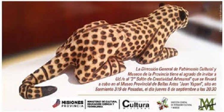 La Subsecretaría de Cultura de Misiones, a través de la Dirección General de Patrimonio Cultural y Museos y su Departamento de Artesanías, invita a la exposición de obras del 2° Salón Provincial de Creatividad Artesanal, que dará inicio este jueves 8 de septiembre a las 20:00 en el Museo Provincial de Bellas Artes Juan Yaparí. El Salón Provincial de Creatividad Artesanal es una muestra que reúne la mejor producción artesanal de la provincia a través de la participación de sus creadores, quienes envían sus  piezas únicas, para luego ser evaluadas por un Jurado compuesto por personalidades indiscutidas en el ámbito de la artesanía.El salón expondrá las obras hasta el 2 de octubre en las instalaciones del museo ubicado en la calle Sarmiento 319 de Posadas.El concurso será premiado por el Fondo Nacional de las Artes y otras instituciones