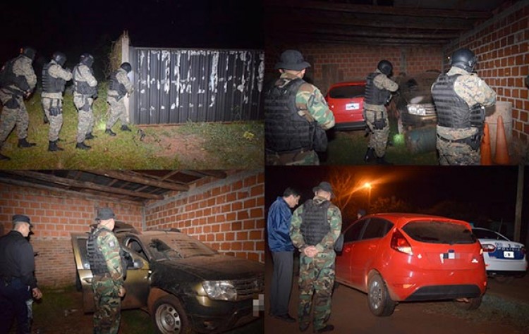 El procedimiento se realizó el miércoles por la tarde cuando efectivos de la división Investigaciones de la UR-IX realizaban controles para la detección de maniobras narco y de contrabando en un camino vecinal de Colonia Oasis.Los policías notaron que un auto Ford Fiesta pasó a excesiva velocidad por las inmediaciones e ingresó a un inmueble, presuntamente deshabitado, sobre avenida Antártida Argentina y calle Bermejo del barrio San Martín. Entrada la noche, con orden del juzgado de turno, se allanó el inmueble en el que hallaron el Ford Fiesta en cuestión, cuyo dominio visiblemente era apócrifo y no tenía asientos traseros. En su interior se encontró una gruesa de cigarrillos de origen extranjero, siendo esto un indicio sobre el uso que tenía este vehículo para actividades ilícitas.En el mismo predio, los investigadores con apoyo del Grupo de Operaciones Especiales (GOE) dieron con un Renault Duster con placa apócrifa y grabado de cristal con distintas numeraciones.Al iniciarse la investigación de la procedencia de la Duster, se estableció que por la misma había un pedido de secuestro desde Avellaneda. En el interior de la vivienda los efectivos encontraron autopartes (apoya cabeza y panel de puertas). Se trata de una casa allanada en otras oportunidades.