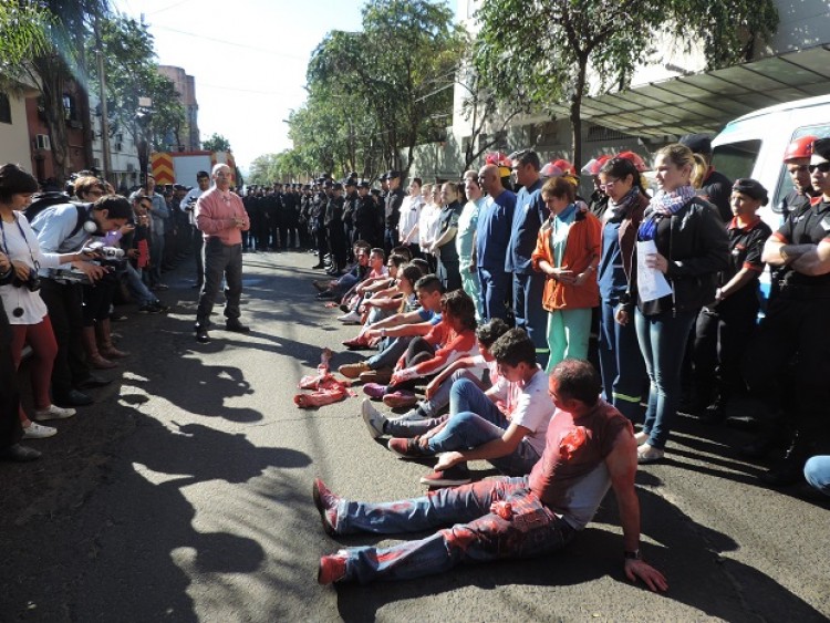 Tras las tareas de contención y salvataje, en diciembre próximo se buscará involucrar 600 agentes en un simulacro de atentado con más de 100 víctimas. En cuanto al siniestro, que tuvo lugar en una transitada intersección capitalina, en hora pico, “pudimos evaluar debilidades y fortalezas del sistema explicó el Director de la Unidad de Emergencia y Traslados del Ministerio de Salud Pública, Orlando Querencio.Estuvieron involucrados unos 400 agentes de los Ministerios de Salud Pública y de Gobierno con todas sus dependencias, Policía, Bomberos, choferes, operadores y cadetes, y los veedores de Gendarmeria, Policía Federal, defensa civil, Ongs y la comunidad en general.En total el operativo se realizó en un tiempo de 21 minutos y se rescataron a 16 victimas programadas y otras cuatro víctimas, no programadas, entre ellos mujeres y niños. ManiobrasLa situación fue más o menos ésta: Una mamá que estacionaba el auto y dejaba a su pequeño hijo en un establecimiento escolar, ubicado en la esquina de la calles Buenos Aires y San Martín, colisionó con una combi escolar que transportaba a niños, y cuyo conductor se había estacionado en doble fila y hablaba por teléfono celular. Consecuentemente al siniestro, se produjeron otros incidentes como la llegada imprevista del marido de la señora del auto involucrado, quien al ser testigo de la situación tiene una crisis emocional fuerte. En momento simulacro, se produjo otra situación de emergencia real en las instalaciones de Vialidad provincial, donde hubo derrame de productos químicos con toxicidad y se tuvo que derivar una ambulancia a esa emergencia. “Lo bueno es que se cumplió con todo el protocolo de emergencia como se había programado; porque se tuvo que responder a varias emergencias a la vez , esto es el resultado de los ocho meses que venimos preparando este simulacro”, especificó Querencio satisfecho.