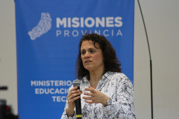 La charla fue organizada, en conjunto, por el Gobierno Educativo y la Facultad de Arte y Diseño de Oberá. Estuvo destinada a alumnos de Institutos Superiores de Formación Docente, a docentes y a las universidades que ofrecen carreras de formación en educación. Estuvo presente la ministra de Cultura, Educación, Ciencia y Tecnología, Ivonne Aquino; el diputado provincial y presidente de la Comisión de Educación, Carlos Baez; y la secretaria académica de la Facultad de Arte y Diseño, Alejandra Camors.“Lo que propusimos es volver a pensar, y darle sentido, al espacio y el tiempo en la Escuela”, dijo al respecto de su charla y agregó que “vivimos un momento en que todo se transforma en esta era digital y nos parece el momento en que los docentes, y futuros docentes, tienen que pensar cómo estas tecnologías modifican las prácticas escolares en los escenarios donde nos desenvolvemos”.Además puntualizó que “deben ser los mismos protagonistas del acto educativo, los que puedan seguir pensando qué pasa con el tiempo y el espacio con la introducción de herramientas digitales”.“Cada aula es un mundo. Allí se dan situaciones que posibilitan la introducción de tecnologías o, por el contrario, las retrasan. Entonces es el docente el que tiene que ver qué pasa y reconocer porqué sucede esto”, agregó.Con la introducción de nuevos modelos pedagógicos a los procesos de enseñanza en la provincia de Misiones, como es el caso del aula inversa, se comenzó a debatir si el celular puede ser utilizado como una herramienta para trabajar en el aula o, por el contrario, es un elemento que puede distraer a los alumnos.“Creo que vale la pena incorporar al celular”, aseguró la especialista. “Tiene una potencialidad enorme y hay muchas experiencias que nos dan la pauta que vale la pena arriesgarnos a introducirlo”, explicó.Verónica Weber es profesora para la Enseñanza Primaria y licenciada en Ciencias de la Educación por la Universidad Nacional de Buenos Aires (UBA). Realizó sus estudios de posgrado en la Universidad Autónoma de Madrid. Es secretaria académica y profesora de la Especialización virtual en Constructivismo y Educación de FLACSO Argentina y profesora regular en las Universidades Nacional de Avellaneda (UNDAV) y Nacional de Hurlingham (UNAHUR). Fue consultora del Programa Nacional de Formación Docente del Ministerio de Educación de la Nación. Participa y dirige proyectos de investigación ligadas a la inclusión de tecnologías a la educación. Autora y coautora de artículos y colaboraciones en diferentes soportes.