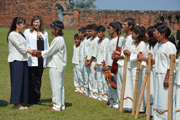 En un recorrido de 30 minutos, la princesa Mako de Japón vivió la experiencia histórica, cultural y arqueológica que ofrece la Misión Jesuítica Guaraní de Santísima Trinidad, de Itapúa. Su Alteza Imperial quedó asombrada con la presentación musical del Coro Mbya Guaraní de la comunidad Guavirami, al punto que a la salida de la visita se tomó más tiempo de lo previsto para estrechar la mano de los integrantes del coro. Acompañó la visita la ministra de Turismo, Marcela Bacigalupo, el gobernador de Itapúa, Luis Gneiting, y la presidenta de la Cámara de Turismo de las Misiones Jesuíticas, Olga Fischer.Durante el recorrido la Ministra de Turismo destacó que la ilustre visitante "ha tenido una agenda muy intensa en Itapúa y se lleva la mejor impresión de esta parte del país, la hospitalidad, entre ellos. Además conoció nuestra artesanía y estamos realizando una presentación de Paraguay como destino turístico en Japón y ella distinguió esa promoción".Por su parte, el gobernador Luis Gneiting indicó que le sorprendió la sencillez de la Princesa y que ésta y su comitiva "se han mostrado muy interesados en la yerba mate, incluso tomó nuestro tereré", manifestó.Fuente: Agencia de Información Paraguaya