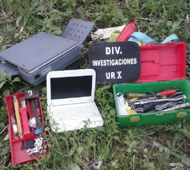 Efectivos de la división Investigaciones de la Unidad Regional X notaron que había un grupo de jóvenes que llamativamente salieron a correr del interior de un baldío situado en avenida Alberto Roth  y calle Irupé.Cuando los policías de civil ingresaron al malezal, hallaron abandonados una fotocopiadora marca Cannon modelo FC 230, una netbook marca plan Seibal Uruguay, un extintor de fuego, varios metros de soga y una caja plástica conteniendo herramientas varias. Todos estos elementos fueron secuestrados y se trata de establecer su procedencia.