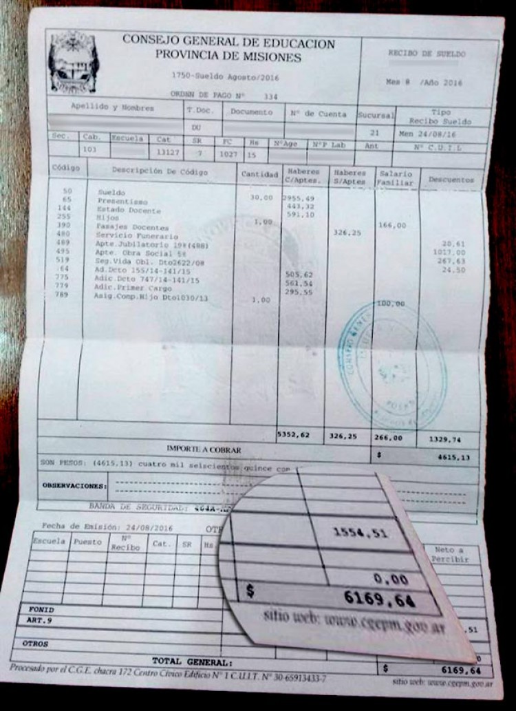 El acuerdo paritario establecía que, a partir de julio, los docentes ganarían un mínimo de 8.500 pesos que, en Misiones, no se cumple.Esta es la denuncia de los integrantes del Frente Gremial que ahora, con recibos de sueldo en mano, mostraron que hay docentes que perciben hasta dos mil pesos menos de lo firmado y homologado a nivel nacional. Al consultar sobre porqué sucede ésto, los responsables se pasan la pelota: Nación dice que Provincia no hizo la rendición de los fondos enviados y Provincia dice que realizó todas las presentaciones correspondientes pero que no llega el dinero. En el medio están los docentes misioneros que no alcanzan el mínimo dispuesto. “Hablamos con algunos colegas que vinieron a reclamar porque no llegan a los 8.500 pesos”, indicó la secretaria general de Udnam, Estela Genesini, en diálogo con PRIMERA EDICIÓN. “Uno de ellos cobra 7.235 pesos, lo que da una diferencia de 1.265 pesos para llegar a los 8.500 y a otros les está faltando más”, señaló. En otro caso, “un docente sin antigüedad cobra 6.169,64 pesos, le faltan 2.330,65 para alcanzar los 8.500”. Sobre este tema, Genesini insistió “no hay novedades, se tiran la pelota. La semana que fuimos a reclamar por el descuento de los días de paro, nos dijeron que pusieron todo lo que podían en el básico y tampoco hay novedades de apertura de mesa ni nada, por lo que el panorama es bastante complicado”, afirmó. Sobre los descuentos, Genesini indicó que “deberemos estar atentos” porque hay que “ver qué postura toma el Consejo General de Educación (CGE) con respecto al paro que convocó la UDPM el 24 de agosto pasado, porque evidentemente descuentan todos los paros, menos el que convoca la UDPM”. Sobre ésto, remarcó que el CGE “no se puede amparar en el hecho de que quien convoca el paro es un gremio ‘constituido legalmente’ porque el fallo de la Corte Suprema de Justicia pone en el mismo nivel a los que tienen personería como a los que tienen inscripción gremial, por lo que Udnam también está ‘legalmente constituido’”, indicó. Por otro lado, Genesini aseguró que en asamblea del jueves por la tarde se decidió convocar a un paro de 48 horas para el 29 y 30 de septiembre con movilización para el 29 hacia la Legislatura. Además, se buscará consensuar en la medida con otras organizaciones docentes.