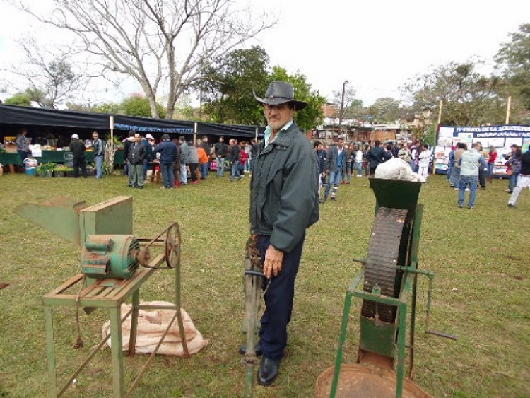 "Diseño y construyo herramientas para mejorar y hacer más liviano el trabajo al colono", dijo Paulo Zapalowski, un productor de la feria franca de San Vicente que además es herrero y se dedica a hacer herramientas para el agro. En la exposición de la Cuarta Fiesta de la Agricultura Familiar, que se llevó a cabo en El Soberbio hace unas semanas, se pudo ver algunas de las herramientas que diseñó y construyó el productor. Zapalowski es un colono que todos los miércoles junto a su esposa vende en la Feria Franca de San Vicente.Pero sus conocimientos en el manejo de los hierros y la habilidad en sus manos le permiten diseñar herramientas para aplicarlas en las tareas de la chacra. Es así que el Inta incluyó en una guía de herramientas a muchos de sus inventos.En la expo de El Soberbio llevó una desgranadora de maní, una batidora de melaza para hacer dulce de caña y una feteadora de mandioca. “Tengo muchos otros inventos en mi chacra y muchos ya los vendí”, contó a PRIMERA EDICIÓN.El colono contó: “Yo diseño por necesidad. Hay trabajos o tareas en la chacra que son poco prácticas para hacerlas con las herramientas comunes, entonces me pongo a pensar qué puedo hacer para trabajar mejor y me pongo a diseñar en mi cabeza y luego lo pongo en práctica. Tengo herramientas para desarrollar mi trabajo, pero otras las tengo que mandar a hacer como tornear un hierro”.Muchos de los trabajos que confeccionó fueron vendidos a otros productores de la provincia y hay algunos que se llevaron a otros puntos del país. “No sé bien cuántas cosas inventé y construí. Tengo ruedas de bombear agua que se llevaron al sur del país. También otras herramientas que vendí a colonos de otras ciudades de Misiones”, explicó.“Diseño y construyo herramientas para mejorar mi trabajo y el de mi familia en la chacra. Algunos colonos los ven y me piden y los hago para ellos. Yo creo que para cada trabajo en la chacra hay que buscar la forma de mejorarlo. Un día un técnico del Inta me dijo que hay una batidora gigante para remover la melaza para hacer dulce de caña. Me sugirió que lo haga y acá está. Este favorece al colono que tiene que remover todo el rato con una pala larga de madera y se quema las piernas. Con esta batidora el trabajo es más liviano y el producto sale mejor terminado”, afirmó Zapalowski.La habilidad de Zapalowski le permite construir herramientas que le resuelven la tarea diaria para su chacra. Como también busca resolver el tema del bombeo de agua. Diseñó una bomba a diafragma y esto le favoreció para el sistema de riego para sus verduras. “Hay distintos tipos de bombas de agua. Cada una sirve para un lugar específico. Lo que hago es ver el arroyo de donde quieren extraer el agua y según la corriente del arroyo, la distancia y la elevación y a partir de ahí veo cuál va a servir para ese lugar. Pueden ser con ruedas, diafragmas o si hay posibilidad de levar electricidad otro tipo de bomba se pueden implementar”, comentó demostrando su capacidad de invención.