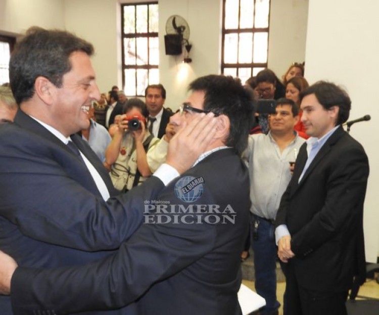 Dentro de un clima de convivencia entre las distintas bancadas partidarias, el diputado nacional, excandidato presidencial y referente del Frente Renovador, Sergio Massa, fue distinguido este jueves como “huésped de honor de la ciudad de Posadas” por el Concejo Deliberante de la capital misionera, en una visita que el dirigente federal hizo a la vieja casona de Bolívar y Rivadavia.Allí estuvo presente unos pocos minutos acompañado por los legisladores nacionales Cecilia Moreau, José Ignacio de Mendiguren y Raúl Pérez; los diputados provinciales Silvia Rojas, Víctor Kreimer y Claudio Wipplinger; y el dirigente camionero Adolfo Velázquez, así como numerosos dirigentes provinciales y simpatizantes que colmaron la barra.Tanto Massa como los concejales que hicieron uso de la palabra sucesivamente en la ocasión, destacaron el clima de “madurez y convivencia política”, y, a la vez del agradecimiento y las bienvenidas, se plantearon someramente algunos aspectos de la situación misionera.La declaración fue aprobada sobre tablas, a propuesta del camionero Juan Domingo Rossberg, con el apoyo de todas las bancadas que integran el Deliberativo posadeño, a excepción del macrista, “positivo” Gabriel Nielsen.Fotos: R.Saldaña