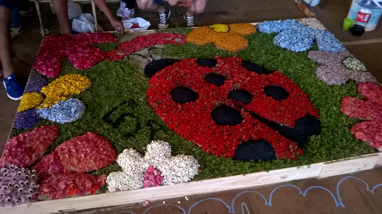 “Durante todo el año los chicos van organizando sus proyectos”, aseguró la directora del Bolp 5, Lilia Jagniaux, en diálogo con PRIMERA EDICIÓN pero “los últimos días son los más intensos”, agregó. Claramente, porque desde el pasado martes los chicos comenzaron a recorrer diferentes puntos de la localidad “para juntar flores y los materiales que necesitan, como semillas, arena, todo para la construcción de sus alfombras, porque las flores son naturales”, remarcó la directora. Ayer, desde las 6 de la mañana, comenzaron a llegar los chicos a la escuela para empezar con el armado de sus alfombras. Para el mediodía, las mismas ya lucían todo su esplendor. Fueron 36, una por cada curso, en la que participaron todos los alumnos de la escuela.