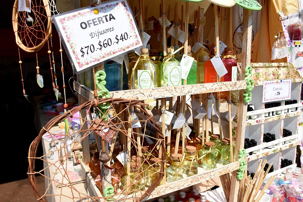 El estand “Hecho en Misiones” del Ministerio de Desarrollo Social de la Provincia siempre sorprende y en esta edición de la Feria Forestal no fue la excepción. En tres carpas gigantes, promedio, las cuales tuvieron que extenderse hacia algunos espacios libres -cercanos al área de estacionamiento del edificio donde está el Teatro Lírico-; mujeres y hombres exponen, cuentan lo que hacen, cómo empezaron y cómo el hecho de emprender les cambió la vida y la economía familiar. Al mismo tiempo hacen muy buenas ganancias con la compra de los visitantes, quienes desde el jueves recorren y aprovechan los espectaculares negocios que se pueden hacer allí. Alejandra Roa, creadora de “El arte del Alma” (un pequeño emprendimiento de velas, difusores y sales perfumadas) conversó con PRIMERA EDICIÓN y explicó la versatilidad de sus creaciones.“De cada esencia que consigo, me encargo del desarrollo de toda la producción, sean sales, difusores, perfumes, perfumantes para los cajones y todo lo que sean velas y fanales. Las esencias más requeridas son de pitanga, maracuyá, limón, cony y bambú”, comentó la mujer. En el puesto donde exhibe sus cosas se consiguen dos paquetitos de sales perfumadas por 5 pesos o cuenquitos de15 pesos con velas y sales.“Son productos económicos y que siempre hacen falta en el hogar para eliminar olores y extraer la humedad. La gente responde comprando bastante. Sin embargo, también tenemos artículos a un monto mayor, pero al mismo tiempo muy accesibles, como los fanales, grandes que valen hasta 350 pesos”, contó Alejandra.Frasquitos con perlitas perfumadas para los placares, aromatizadores para autos y difusores con pelotitas de hidrogel, que aromatizan y decoran el hogar, enumeró la emprendedora sobre algunos de los productos que tiene a la venta. Alejandra es maestra jardinera, autoproclamada “amante” de los buenos aromas quien hace unos nueve años aprendió por la profesión docente, y como hobby, a realizar velas decorativas. Primero ofrecía sus creaciones a las compañeras de trabajo y más tarde, participando en las redes de emprendedores encontró una veta y ahora prácticamente toda la familia colabora en las ventas y participa de los beneficios. Más novedadesSus compañeros en el mismo estand de emprendurismo -promovido por el Ministerio de Desarrollo Social de la provincia, a través de la Subsecretaría de Coordinación y Promoción de Economía Social-, Alicia Meza junto a su esposo Luis Dávalos son los impulsores de “Arte en Cuero” donde los artículos para tomar mate o tereré finamente decorados en cuero y metales preciosos también se llevaron aplausos. Los artesanos, destacaron, en párrafo aparte, el buen comportamiento del estado del tiempo que acompañará el desarrollo de esta gran feria misionera de la cual disfruta toda la familia.
