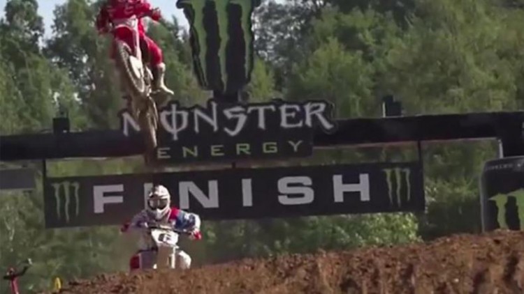 El piloto Jason Anderson venció la prueba del Motocross de las Naciones y cuando estaba festejando, otro piloto le cayó encima mientras celebraba la victoria.Según publica el sitio Doce.Tv, Anderson cayó desplomado y sufrió una conmoción cerebral aunque tras unas pruebas se confirmó que no sufrió daños graves, pero el susto fue terrible. Así la alegría se tornó en drama cuando el piloto japonés, Chihiro Notsuka, no pudo evitar aterrizar con su moto encima de su compañero. Por suerte, solo fue un desgraciado accidente en el que ambos protagonistas tienen cierta parte de culpa: Anderson ralentizó en medio de un salto, y Notsuka que iba detrás tendría que haber controlado lo que pasaba delante.