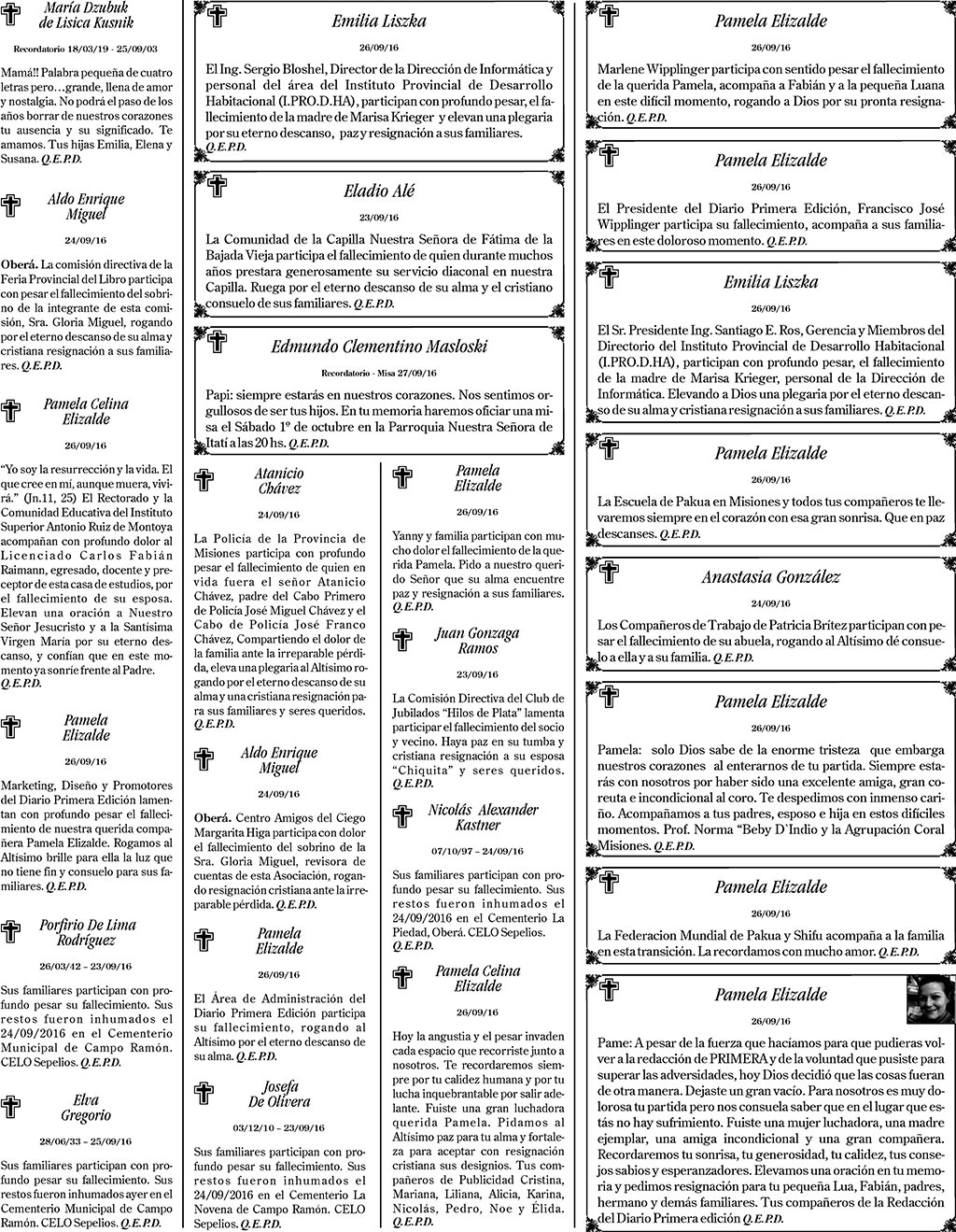 Fúnebres del martes 27 de septiembre de 2016