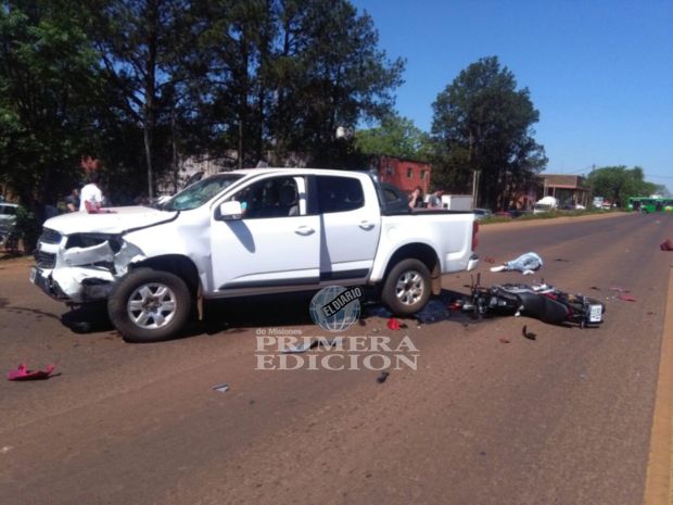 En ese lugar, una Ford F-10 ingresaba a la ruta nacional 12 rumbo hacia el centro de Posadas cuando -por razones que se investigan- chocó con una motocicleta Honda que circulaba hacia la zona de la exGarita. El impacto fue tan violento que el ocupante del rodado menor "voló" aproximadamente diez metros antes de caer sobre el asfalto.Aunque en un principio se temió lo peor, el hombre -del cual hasta ahora se desconoce la identidad- estaba con vida, aunque fue trasladado inconsciente al hospital Ramón Madariaga con múltiples fracturas.  En el lugar intervino personal de la comisaría Décima y del área de Tránsito, además de la ambulancia.Fotos: M.Fedorischak