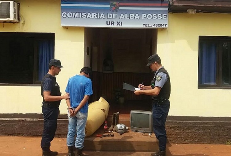 El miércoles se hizo presente en la guardia de prevención de la comisaría de Alba Posse, dependiente de la Unidad Regional XI con asiento en Aristóbulo del Valle, un agricultor de 54 años identificado como Delcio C. y domiciliado en la zona urbana de Santa Rita, para radicar una denuncia contra Luis D., quien desde hacía tres meses trabajaba en su chacra hasta que ese día se marchó del lugar llevándose consigo un equipo de música, un televisor, dos teléfonos celulares, un kilogramo de RoundUp, un litro de herbicida, un par de botas, un colchón, un prolongador y varias herramientas.Este jueves, los policías de Alba Posse lograron ubicar el paradero del acusado, quien se hallaba en una vivienda en el paraje Torta Quemada y tenía en su poder la totalidad de los elementos sustraídos.Los uniformados procedieron al secuestro de estos elementos y a la inmediata detención del individuo, mayor de edad, quien fue alojado en la comisaría local, a disposición de la Justicia Penal en turno de Oberá.