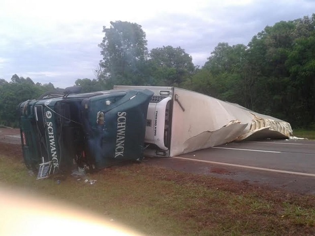 Sucedió alrededor de las 5:50 a la altura del kilómetro 1.459 de la citada arteria nacional, en jurisdicción de la comisaría de Capioví. Valdecir D.S., un brasilero de 44 años, perdió el control de un camión Volvo semirremolque que transportaba quesos y volcó, quedando atravesado sobre la ruta. De acuerdo al relevamiento preliminar de la Policía Científica de la Unidad Regional IV, el accidente se produjo presuntamente al reventar el neumático delantero izquierdo del rodado, que transitaba en sentido Posadas-Iguazú.Durante horas hubo restricciones en el tránsito, hasta que se pudo sacar el vehículo de la calzada, y hubo que apelar a un desvío por Ruiz de Montoya.
