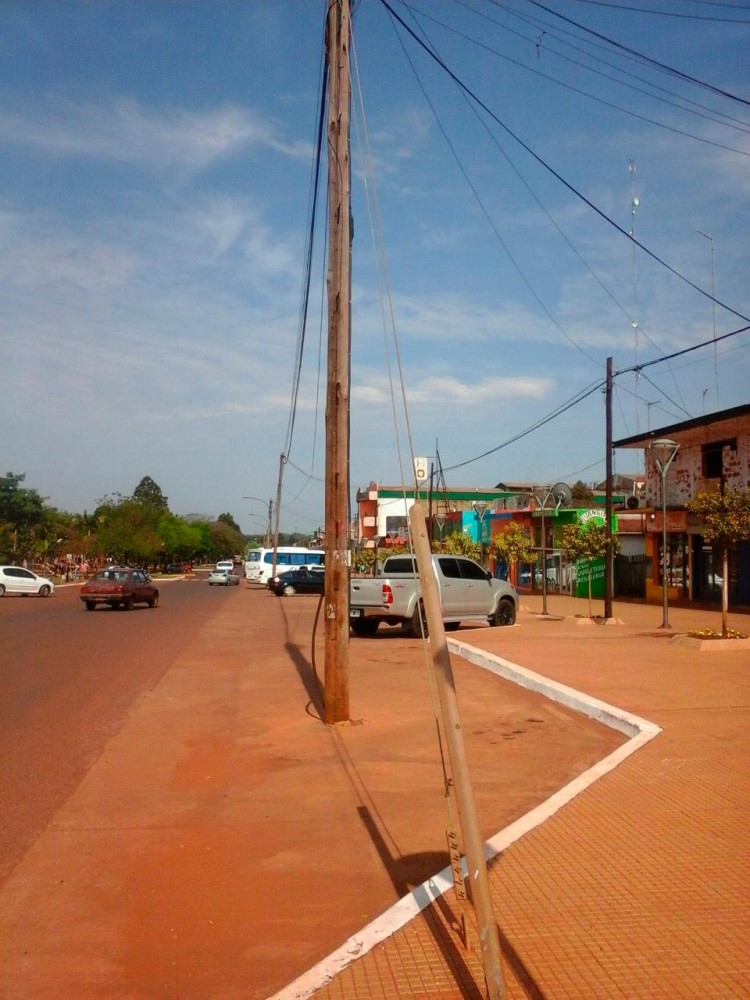 La aprobación de las ordenanzas 19 y 20 para la creación del Registro de Estructuras y Portantes y Antenas (RES) y luego sus modificatorias no mejoró el sistema de tendido eléctrico ni los postes de telefonía fija y de electricidad. Esta semana el departamento Guaraní se quedó cinco horas sin energía eléctrica por la caída de un poste de alta tensión que estaba sujeto por cables hacía más de cinco años. Todavía hay postes en mal estado que ponen en riesgo el servicio y la integridad física de las personas.Cuando los propietarios de los medios radiales y televisivos salieron a protestar por la aprobación de las ordenanzas 19 y 20 donde el municipio pretendía cobrar jugosas sumas de dinero por las estructuras y soportes de las antenas y de los postes de telefonía fija y de tendido eléctrico, aseguraron que era para darle seguridad a los vecinos. Luego de una puja entre los medios y los ediles exceptuaron el cobro a los medios y a otras empresas locales que prestan servicios de Internet y radio taxi, pero quedó firme para las empresas foráneas y la creación del RES.Pasaron cinco meses y el paisaje de los tendidos eléctricos y telefónicos no mejoraron y los inconvenientes siguen para la ciudadanía. El mejor ejemplo es lo nombrado anteriormente, con la caída del poste de alta tensión sobre la ruta 13. La estructura que se desplomó sobre un galpón, afortunadamente sólo hubo daños materiales. Según los concejales oficialistas esas ordenanzas eran para controlar y obligar a las empresas a mejorar y solucionar los inconvenientes que generan sus tendidos y postes en la ciudad.Sin ir más lejos y los inconvenientes que generan los postes de telefonías fijas y energía eléctrica se ve en el centro de la ciudad. El paseo del centro que fue inaugurado en plena campaña política el año pasado tiene postes telefónicos en el estacionamiento y el Municipio no logró que la empresa cambie de lugar y despeje el lugar que tienen permitido parar los automóviles y queda expuesto a tener un accidente.Todavía hay postes de tendido eléctrico de alta tensión que están sostenido por cables. Fueron reparados en formas precarias para solucionar el fluido eléctrico luego de una tormenta y quedo así hace ya varios años. Por otro lado, también hay estructuras de alumbrado público que no funcionan y el Municipio no intercede para que se solucione. Según las normativas aprobadas, iban a haber fuertes multas para las empresas que no solucionen las problemáticas en sus postes y tendidos.  Además del cobro de fuertes sumas de dinero en carácter de tasas municipales por prestar el servicio y obtener lucros con ellos en el municipio.