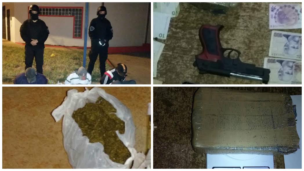 El procedimiento de mayor relevancia se concretó a las 20:00 del jueves, cuando el guarda de la empresa Kruse puso en alerta a un policía que viajaba en el ómnibus y le indicó a uno de los pasajeros entre cuyas pertenencias había droga.Minutos después el colectivo se detuvo frente al Cuartel de Bomberos de Garupá, donde ya estaba desplegado el operativo encabezado por el Comando X. Se procedió a la identificación del pasajero en cuestión, Ramón R. (26), quien entre sus pertenencias tenía un “ladrillo” de marihuana, la réplica de una pistola y dinero.Intervino la Dirección de Toxicomanía y constató que el “ladrillo” tenía 905 gramos. Otro procedimiento, en este caso encabezado por la Dirección Agrupación Motorizada, se registró a las 23:30 por la colectora del Acceso Sur, a una cuadra de una escuela Bachillerato Polivalente 35.En ese lugar tres jóvenes intentaron evitar la identificación, aunque finalmente fueron puestos bajo resguardo quienes dijeron llamarse Adrián (22), Jesús (19) y Matías (19). Tenían en su poder dos bolsitas con marihuana. Una de ellos pesaba 70 gramos, de acuerdo al pesaje de Toxicomanía.Por ambas intervenciones policiales se elevaron las actuaciones al Juzgado Federal de Posadas.Fotos: Policía de Misiones
