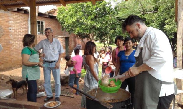La solidaridad y la buena voluntad del chef Emanuel Toranzo, quien llegó desde Buenos Aires a visitar a su amigo de Puerto Rico, Mariano Pujol, no se quedó en la comida comunitaria que prepararon para el barrio Fátima de Puerto Rico, sino que también alcanzó a la aldea El Pocito de Capioví. Es que, como contó Pujol a PRIMERA EDICIÓN, “nada fue planificado, cuando llegó Emanuel nos sentamos a tomar un mate y me dijo que no tenía problemas en aprovechar su visita y cocinar una comida comunitaria en un barrio pobre de la ciudad. Entonces, como me desempeño en la Municipalidad de Puerto Rico y conozco los barrios me contacté con María Antúnes que era cocinera de cuando todavía funcionaban los comedores, los cuales a causa del recorte de presupuestos para estas asistencias del Estado, se cerraron la gran mayoría de los merenderos y comedores que dependían de la comuna. Así salió la comida en el barrio Fátima” (caso publicado oportunamente por este Diario). Sin embargo, la buena voluntad de los amigos -Emanuel y Mariano- no se quedó allí. Como Mariano juega al fútbol y le tocaba disputar un partido en El Pocito, Emanuel decidió acompañarlo. “Y entonces pensamos, podemos hacer una comida también ahí para la gente de la aldea, y así salió. Hablé con la Municipalidad de Capioví, ellos donaron los pollos y conseguimos el restos de los ingredientes. Emanuel cocinó para 340 personas, que son todos los integrantes de la aldea El Pocito”, contó Pujol.Además, el ambiente se tornó tan agradable, y despertó tanto el interés de los miembros de la aldea y de la escuela, que Emanuel mientras cocinaba les dio una clase de cómo cocinar una comida nutritiva y saludable. Qué aporta al cuerpo cada ingrediente que usó y después les hizo degustar la comida que ellos mismos vieron cocinar. “La experiencia fue fantástica, Emanuel se fue muy contento, estuvo una semana de visita e hicimos todo esto, así que prometió volver. Con estos objetivos nos organizaremos para ver qué hacemos. Lo que destacamos es que nosotros publicamos las fotos de lo que hicimos en Facebook, y un montón de gente de Buenos Aires se contactó con nosotros para saber de qué forma puede ayudar. Quedaron en contactarse con la gente y ver cómo aportar su granito de arena, esperemos que puedan hacerlo. Así que más satisfacción aún, saber que mostramos lo que hicimos y otros quieren hacer algo para ayudar a los que menos tienen también”, se emocionó Pujol. Emanuel Toranzo enseña cocina en una escuela de Buenos Aires, y contó Mariano a este Diario que el chef “se fue realmente muy contento, él dice que hacer estas actividades alimentan su alma. Así que pensando de esta forma, todos salimos muy satisfechos, la gente que pudo disfrutar de su arte culinario y él que se sintió más que bien haciendo lo que le gusta y con el plus de ser solidario”.