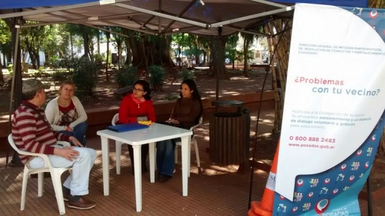 Los lunes, de 8 a 12, el equipo de profesionales de la Municipalidad visita los CIT de Itaembé Miní Este (B° Jardín), Chacra 32-33 (Lavalle 4654), Villa Cabello (149), Villa Urquiza (Av, Cabred 2307); los martes, de 8 a 12, Santa Rita (Av. Chacabuco y calle 127), Las Dolores Norte (Av. Cocomarola 6907), Las Dolores Sur (Av. Cocomarola y Av Fangio), Villa Lanús (Av. Pte. Juan Perón 1845), Itaembé Miní Oeste (Av. 147 y calle 152); los miércoles, de 8 a 12, Villa Cabello (Ch 149), Chacra 32-33; los jueves, de 8 a 12, Las Dolores Norte (Av. Cocomarola 6907), Villa Urquiza (Av. Cabred 2307), Itaembé Miní Este (B° Jardín); los viernes, de 8 a 12, Santa Rita (Av. Chacabuco y calle 127), Villa Lanús (Av. Pte. Juan Perón 1845), Las Dolores Sur (Av. Cocomarola y Av. Fangio), Itaembé Miní Oeste (Av. 147 y calle 152).Además, los miércoles y viernes, de 8 a 12, funciona un stand informativo en la Plaza 9 de Julio. La directora de Capacitación y Formación de Centros de Resolución de Conflictos, Valeria Fiore, explicó que “la idea está teniendo muy buena recepción. Los días en la plaza no paramos. Cuando la gente ve nuestro cartel con la pregunta ¿tiene problemas con su vecino?, enseguida se acerca y consulta de qué manera los pueden abordar”.En este sentido, reiteró que la falta de diálogo es el principal factor que influye en el desencadenamiento de un problema. “Muchas veces vemos que vienen a nosotros con un conflicto que creen específico pero que en realidad se trata de no tener el hábito de comunicarse y de hablar del tema. Tratamos que se logre la convivencia desde el reconocimiento de las diferencias”, comentó.A su vez, instó a los posadeños a que se acerquen a la delegación más cercana a su barrio para interiorizarse sobre este servicio que puede colaborar en una mejor convivencia vecinal.