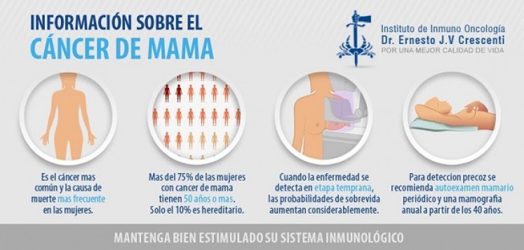 El cáncer de mama es una enfermedad causada por la proliferación anormal de las células de la glándula mamaria, formando un tumor maligno. A pesar de numerosas investigaciones que se están llevando a cabo mundialmente para controlar esta enfermedad, su incidencia continúa en aumento.Aunque puede presentarse en hombres y mujeres, es una enfermedad poco frecuente en los hombres. En la Argentina representa la principal causa de muerte por cáncer en mujeres, produciéndose alrededor de 5600 muertes por año. De acuerdo a las estadísticas del Instituto Nacional del Cáncer, se estima que se producirán más de 19.000 nuevos casos por año, lo cual representa el 16,8% del total de incidencia de cáncer en Argentina.¿Quiénes pueden desarrollarlo?Como otros tipos de tumores malignos, el cáncer de mama es una enfermedad que no puede ser adjudicada a una única causa en particular, teniendo un carácter multifactorial. Sin embargo, se reconocen actualmente algunos factores que aumentan el riesgo de padecer cáncer de mama. No obstante, ninguno de ellos implica la certeza de aparición de la enfermedad. Algunos de esos factores no pueden modificarse, pero sobre otros se puede intervenir ya que están relacionados con el estilo de vida.Dentro de los factores que aumentan la posibilidad de enfermar se incluyen: ser mujer, mayor de 50 años, tener antecedentes personales o familiares de cáncer de mama o de enfermedad benigna de mama, haber recibido radioterapia dirigida a la mama o el pecho particularmente en la juventud, haber recibido o estar recibiendo tratamiento con hormonas combinadas como estrógeno y progesterona, haber tenido la primera menstruación a edad temprana (antes de los 12 años) o la menopausia a edad tardía (después de los 55 años), no haber tenido hijos o haber tenido el primer parto después de los 30 años, padecer de sobrepeso u obesidad, ser sedentario, ser fumador y consumir alcohol en exceso.¿Cómo prevenirlo?La prevención es la herramienta fundamental en la lucha contra el cáncer de mama y consiste en medidas tendientes a reducir el número de casos nuevos de la enfermedad o de morir por esta causa. Se recomienda adoptar un estilo de vida saludable: no fumar, reducir el consumo de alcohol, realizar actividad física y controlar el sobrepeso.Por otro lado, la detección temprana es una forma de prevención esencial ya que los tumores de menos de 1 centímetro tienen hasta el 90% de probabilidades de curación, reduciendo el número de muertes. Para ello, es indispensable el control médico regular y es de primordial importancia el autoexamen mamario. La mamografía permite detectar el tumor cuando todavía es pequeño y no palpable.Existen también otros métodos diagnósticos por imágenes, como la ecografía y la resonancia magnética. El médico indicará cual/es y con qué frecuencia deben realizarse de acuerdo a las características individuales de cada paciente.La prevención del cáncer de mama requiere de un trabajo conjunto entre los pacientes y el sistema de salud, siendo la detección precoz la piedra angular para el control de la enfermedad. Consulte a su médico regularmente.Fuente: Dr. Ernesto Crescenti (MN: 50.776). Médico, investigador y director del Instituto de Inmunooncología Dr. Ernesto J.V. Crescenti.