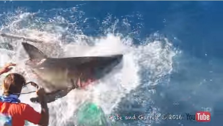 Un tiburón blanco de 4 metros era observado por unos turistas que trataron de acercarlo a su embarcación con un atún como señuelo. De pronto, el pez logra ingresar a la jaula donde se encontraba un buceador que estaba filmando al animal bajo el agua."¿Está adentro? ¿Está en la jaula?", le preguntan los tripulantes del barco al buzo. Segundos después el animal sale de la jaula con algunos cortes en el cuerpo y se aleja del lugar.Según informa el sitio PR, el buzo logró salir ileso.