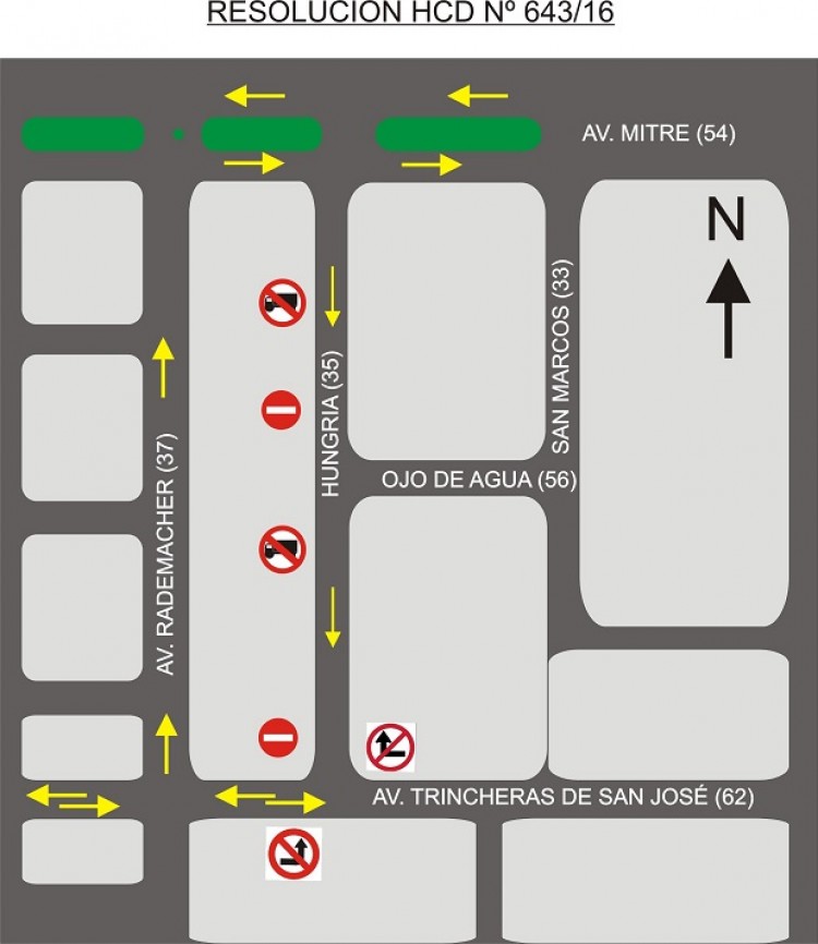 Campañas de prevención, fiscalización, control y educación vial son desarrolladas integralmente por diversas áreas de gobierno local con el propósito de llevar a la práctica esta modificación vial y garantizar mayor seguridad en el tránsito.La Dirección de Ingeniería Vial, en cumplimiento de la Comunicación 564/2016 – Resolución N° 643/2016 del Concejo Deliberante de Posadas, culminó con la señalización del sentido único de circulación en sentido Norte-Sur de la calle Hungría que comenzará a funcionar el lunes.Por pedido de los vecinos de la zona, se aprobó la medida y desde el municipio se dispuso su ejecución e implementación rápida y efectiva.Se recomienda además la circulación con precaución, respetando la nueva disposición.