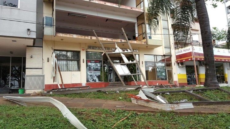 César Godoy, Secretario de Acción Social del Sindicato de Canillitas ubicado en el cerro pelón de Posadas, señaló a PRIMERA EDICIÓN que “tomaron conocimiento de los daños el lunes cerca de las 22” y recién cuando calmó el viento, a la medianoche, se acercaron a la sede.El panorama fue muy desalentador porque desde la vereda ya se veía que el ventanal de ambos pisos había estallado por la fuerza del viento. Las astillas de vidrios se esparcieron por toda la plazoleta.Aguardaban la llegada de los representantes de la empresa aseguradora del lugar para poder constatar la magnitud de los daños y recién entonces comenzar a organizar la limpieza, que se estima llevará varios días. Se recomienza no pasar por la zona ya que se mantiene el peligro de caída de restos de vidrios y hierros del ventanal.
