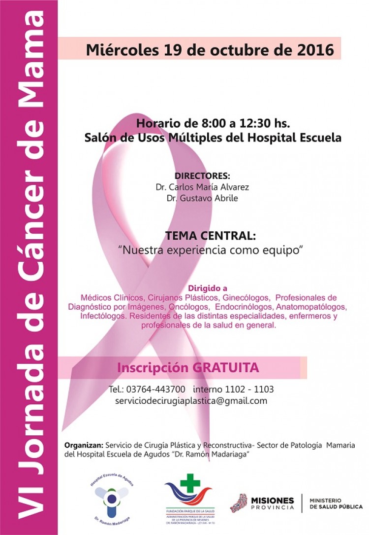 La convocatoria es para Médicos Clínicos, Cirujanos Plásticos, Ginecólogos, Profesionales de Diagnóstico por Imágenes, Oncólogos, Endocrinólogos, Anatomopatólogos, Infectólogos. Residentes de las distintas especialidades, enfermeros y profesionales de la salud en general.En la oportunidad desde el Servicio de Cirugía Plástica y Reconstructiva- Sector de Patología Mamaria del Hospital Escuela compartirán su experiencia como equipo en la atención relacionada al cáncer de mama.