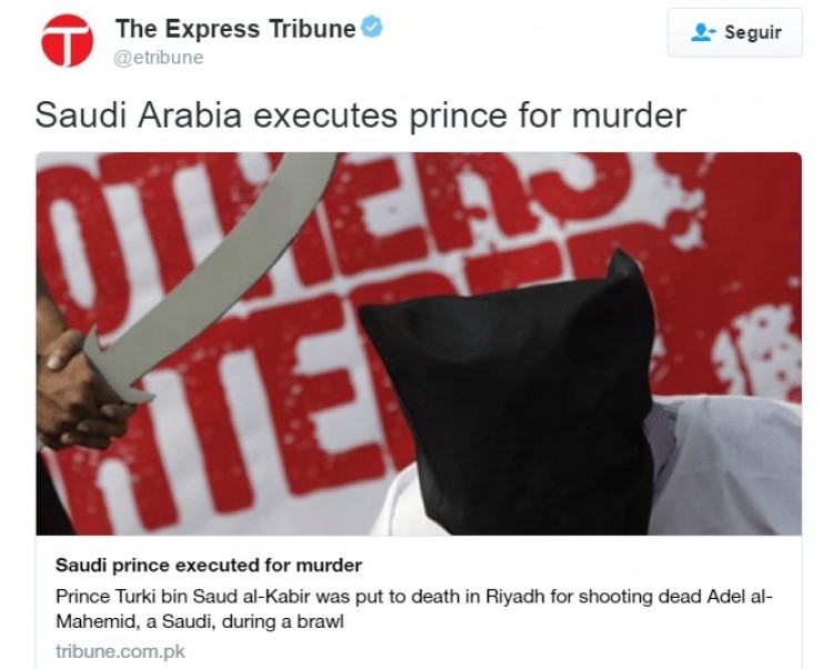 La pena capital fue aplicada este lunes al príncipe Turki bin Saud bin al Kabir. Se trata de un caso extremadamente raro, en el que un miembro de la conservadora familia gobernante del reino sufre la pena de muerte.<a href="http://saudigazette.com.sa/saudi-arabia/prince-executed-killing-saudi-citizen/"> Según medios locales, el asesinato por el cual se condenó al príncipe ocurrió en 2012</a>.El veredicto de culpabilidad fue apoyado por un tribunal de apelaciones y luego aprobado por el Tribunal Supremo de Arabia Saudita, agregó <a href="http://cnnespanol.cnn.com/2016/10/19/arabia-saudita-ejecuta-a-un-miembro-de-la-familia-real/?utm_medium=twitter&utm_source=twitterfeed">CNN</a>.Por su parte, otro príncipe real saludó la noticia, en la primera reacción pública de un integrante de la familia real. "Esta es la ley de Alá y el camino de nuestro bendecido reino. Que Alá tenga piedad del asesino y de su víctima", escribió el príncipe Khaled Al Saud en Twitter.El príncipe Turki bin Saud al Kabir se había declarado culpable de disparar al joven Adel al-Mohaimeed después de una pelea. La autoridades sauditas emitieron un decreto para llevar a cabo la decisión de la Corte en un sorprendente ejemplo de un miembro de la familia gobernante sometido a pena de muerte. <a href="https://twitter.com/ChildrenofPeace/status/788444621634494464">El comunicado no especifica cómo murió el príncipe</a>. La mayoría de las personas ejecutadas en el reino son decapitados con una espada.La familia de la víctima se negó a aceptar ofertas de dinero y exigió justicia, informa Al Arabiya. El comunicado del Ministerio del Interior confirmó "la intención del rey Salmán de fortalecer la seguridad, la justicia y los juicios de Dios". Además, advirtió "que el castigo legítimo será el destino de quien trata de atacar a personas inocentes y derramar su sangre".<a href="http://www.ibtimes.co.uk/saudi-prince-turki-bin-saud-al-kabeer-executed-murder-1587091">Los miembros de la familia real de Arabia Saudita han sido ejecutados solo en raras ocasiones</a>. Uno de los casos más resonantes fue el de Faisal bin Musaid al Saud, quien había asesinado a su tío, el rey Faisal, en 1975.El tercer país con más ejecucionesAmnistía Internacional afirmó que el reino llevó a cabo al menos 158 penas de muerte en 2015, convirtiéndose en el tercer país con más ejecuciones después de que Irán y Pakistán. Los casos de asesinato y tráfico de drogas representan la mayoría de las ejecuciones en Arabia Saudita, aunque 47 personas fueron ejecutadas por "terrorismo" en un solo día en enero de este año. Expertos en derechos humanos han expresado su preocupación acerca de la imparcialidad de los juicios en el reino, pero el Gobierno ha reiterado en varias ocasiones que la pena de muerte es un factor esencial para frenar el crimen.La ejecución del príncipe eleva a 128 el número de personas a las que se les aplicó la pena de muerte en el país durante este año, según un conteo de la agencia de noticias dpa.Según grupos internacionales de derechos humanos, Arabia Saudí, que implementa una estricta interpretación de la ley islámica, se encuentra entre los mayores ejecutores del mundo.El reino impone la pena de muerte por delitos como asesinato, robo armado, vandalismo, violación, narcotráfico y brujería.
