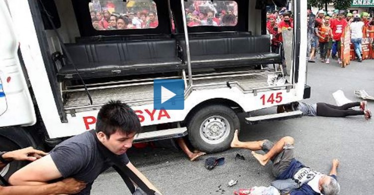 Un furgón policial atropelló este miércoles a varios manifestantes durante los enfrentamientos registrados durante una manifestación contra Estados Unidos ante la Embajada norteamericana en Manila, según informa el diario "<a href="https://www.youtube.com/watch?v=Jh6ylIQbIKY">The Inquirer</a>".Un vídeo publicado en YouTube por este medio muestra cómo decenas de manifestantes zarandean y atacan a un furgón policial cuando pasa entre ellos, hasta que el conductor decide dar marcha atrás a toda velocidad para intentar atropellarles e, instantes después, cambia el sentido de la marcha y arrollar a varios manifestantes a su paso.Las imágenes, que también fueron difundidas por el diario "<a href="http://www.eltiempo.com/mundo/asia/video/policia-atropella-a-multitud-en-filipinas/16730185">El Tiempo</a>" de Colombia, permiten ver cómo el vehículo policial acelera para alcanzar a los manifestantes, primero marcha atrás y luego hacia adelante e incluso se observa a una manifestante que queda atrapada bajo la rueda del furgón y sale por su propio cuando el vehículo vuelve a dar marcha atrás.Los enfrentamientos entre agentes antidisturbios de la Policía filipina y los cientos de manifestantes contrarios a las políticas internacionales de Estados Unidos registrados este miércoles ante la Embajada norteamericana en Manila se han saldado con al menos 21 detenidos, según ha dicho uno de los organizadores de la protesta.Se desconoce el balance final de heridos en los enfrentamientos ni la gravedad de los lesionados por el atropello del furgón policial.Fuente: Medios DigitalesPolémica política anti drogaHasta 1.400 narcotraficantes han muerto en acciones de justicieros en Filipinas desde el 1 de julio, un día después de que asumiera la presidencia del país Rodrigo Duterte, quien defiende la legitimidad de que los ciudadanos de a pie asesinen a los traficantes.Un portavoz de la Policía Nacional, Dionardo Carlos, explicó en declaraciones recogidas por el periódico filipino "Malaya Business Insight" que 1.805 personas han sido atacadas por justicieros entre el 1 de julio y el 31 de agosto, pero "solo 1.391 han fallecido". Duterte asumió la presidencia el 30 de junio.Otros 1.011 sospechosos de relación con el tráfico de droga han muerto en ese mismo periodo en acciones de la Policía y otros 14.798 han sido detenidos en más de 15.600 operaciones antidroga, agregó. Además, la Policía ha presentado cargos contra 281 sospechosos por drogas y mantiene detenidos a otros 176 por el momento sin cargos. Otros 105 sospechosos están en busca y captura.La lucha de las fuerzas de seguridad filipinas contra el narcotráfico se incrementó desde el día de las elecciones ya que, según el portavoz de la Policía, Wilben Mayor, "esta es la prioridad del presidente".De hecho, Duterte también llamó a los ciudadanos a sumarse a esta lucha contra la delincuencia: en la ciudad de Cebú –ubicada en las Bisayas centrales–, el presidente, antes de acceder formalmente al cargo, ofreció 100.000 euros por cada narcotraficante muerto. Esta oferta era al menos 100 veces superior a la ofrecida por el propio alcalde de Cebú, Tomás Osmeña, que anunció la entrega de algo menos de 1.000 euro por cada traficante de narcóticos que fuera abatido en la ciudad.Por su parte, la Comisión de Derechos Humanos (CDH) ha expresado su preocupación ante el creciente número de delincuentes abatidos, por lo que ha establecido un grupo de trabajo para evaluar las ejecuciones extrajudiciales.Asimismo, numerosas organizaciones en favor de los Derechos Humanos han criticado esta política del Gobierno de Duterte, acusándola de enfocarse en los pequeños narcotraficantes en lugar de desarrollar una estrategia para acabar con los máximos responsables del tráfico de drogas en el país.