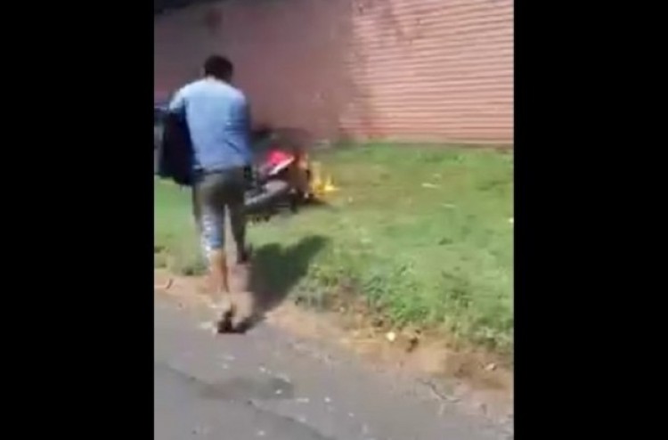 Alberto Meza, uno de los testigos del hecho, comentó que el motociclista, al percatarse de que su biciclo sería retenido, se acercó a él y le prendió fuego al tanque de combustible. Luego, volteó la moto para que se derrame el combustible e incremente el fuego.Un video del hecho circula a través de las redes sociales. En él se ve el momento en que el joven intenta que el fuego se expanda por el biciclo y un agente intenta apagarlo con arena. En un momento, el motociclista dice: "Por corrupto, por querer coimear", haciendo referencia a un supuesto intento de extorsión por parte de los agentes.Fuente y Video: <a href="http://www.ultimahora.com/">diario Última Hora (Paraguay)</a>