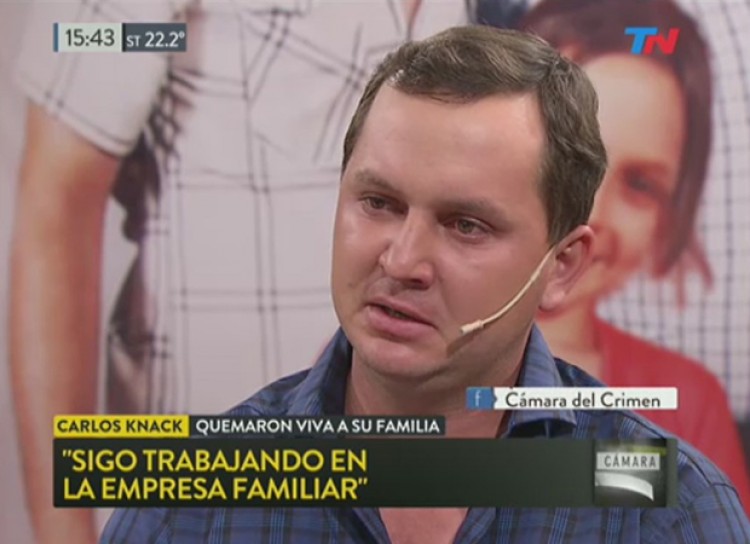 Carlos "Nano" Knack, el joven que perdió a sus padres y hermanos en la denominada "Masacre de Panambí", el 25 de mayo de 2014, estuvo ayer en la televisión nacional y habló de la causa que lleva adelante la Justicia.Entrevistado por el periodista Ricardo Canaletti en "Cámara del Crimen", que se emite por la señal Todo Noticias (TN), "Nano" relató pormenores del hecho y pidió la ayuda del propio presidente de la Nación, Mauricio Macri, en su búsqueda de justicia.En el hecho perdieron la vida Oscar Knack (43), Graciela Mojfiuk (42) y los hijos de la pareja, Cristian (25) y Bianca (12), hermanos de Carlos, quienes fueron quemados vivos por al menos cinco delincuentes. La causa tiene por el momento tres detenidos.