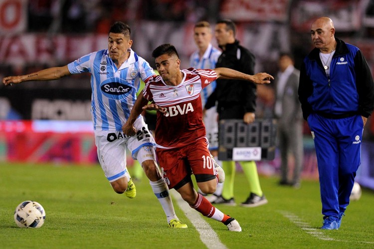 Tras dejar su invicto en Paraná, River se reencontró esta noche con la victoria al superar por 1 a 0 a un duro Atlético Rafaela, en el estadio Monumental, en un partido correspondiente a la séptima fecha del torneo de Primera División.El experimentado Andrés D Alessandro, a los 34 minutos del segundo tiempo, anotó el gol del triunfo "millonario", con un tiro libre que se desvió en la barrera y descolocó al arquero Lucas Hoyos.D Alessandro no formó parte del equipo titular por una decisión táctica del entrenador Marcelo Gallardo, pero, desde el banco, terminó siendo finalmente la llave para abrir un encuentro que se tornó muy complicado para River, que no jugó bien.El técnico riverplatense fue expulsado antes del inicio del partido, ya que sus dirigidos entraron tarde al campo de juego por una imprevista lesión de Ignacio Fernández en la entrada en calor.Ante esto, el árbitro Germán Delfino aplicó el reglamento y le pidió a Gallardo que abandone el campo de juego poco antes del pitazo inicial. Con este resultado, el elenco de Núñez alcanzó los 14 puntos y quedó a dos del líder Estudiantes, que mañana tiene una visita de riesgo al encumbrado San Lorenzo, que también tiene 14.Por su parte, la "Crema", que hizo un buen partido en el Monumental y no mereció irse con las manos vacías, se quedó con 10 unidades.Flojo primer tiempo de RiverLa visita sorprendió desde el inicio, apretando a River en la salida y cerrando los caminos creativos del local, que no le podía encontrar la vuelta al planteo del rival.Pese a esto, River tuvo la primera chance clara, a los 8 minutos, cuando Rafaela jugó mal una pelota parada y una rápida réplica entre Alario y Driussi terminó cun un remate de este último, salvado por el arquero Hoyos.Con el correr de los minutos, el juego se tornó cada vez más discreto, pero el trámite seguía siendo más favorable para los santafesinos.Cuando la primera parte se moría, el arquero Augusto Batalla le puso el pecho a un remate a quemarropa de Ramiro Costa dentro del área chica y evitó el gol de Rafaela en la jugada más clara hasta ese momento.La solución estaba en los pies de D´AlessandroCon más empuje que fútbol, y aprovechando la merma física de los jugadores de Rafaela, River logró jugar unos metros más arriba en el inicio del complemento.Sin embargo, su juego era muy limitado y empezó a buscar con envíos aéreos a Lucas Alario, que parecía seguir peleado con el arco. Con esepanorama, y cuando parecía que el empate era inquebrantable, D´Alessandro cambió el rumbo del partido a los 33 minutos.El volante ofensivo se paró junto a "Pity" Martínez para ejecutar un tiro libre desde la derecha y sacó un zurdazo buscando el palo izquierdo, pero la pelota se desvió en una de los jugadores de la barrera, Gastón Campi, descolocó a Hoyos y se metió en el arco.El gol fue un verdadero desahogo para D´Alessandro y para todo River, que en los últimos minutos se dedicó más a defender la victoria que a buscar el segundo.Pero Rafaela ya no tenía energías para forzar el empate y apenas pudo inquietar en el cierre con algunos pelotazos que no trajeron mayoresconsecuencias.Fuente: Agencia de Noticias NA