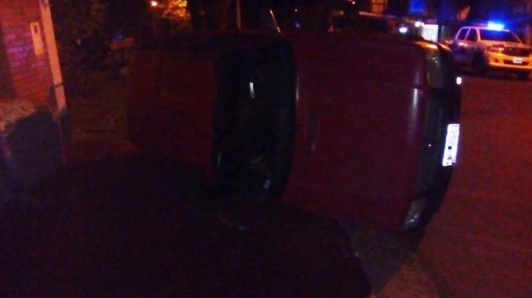 El hecho ocurrió en Juan José Paso casi Vélez Sársfield.  Por causas que se tratan de establecer Juan Carlos P. (31), quien iba en compañía de su pareja Sandra R. (27), perdió el control de su  Fiat Uno y terminó despistando y volcando.Ambos fueron trasladados al hospital local con lesiones que no serían de gravedad.Según informa el parte de prensa de la Policía, el test de alcoholemia que se realizó al conductor arrojó un resultado positivo (1,86) por lo que  los efectivos procedieron a detenerlo preventivamente. Intervino la policía científica y la comisaría jurisdiccional.