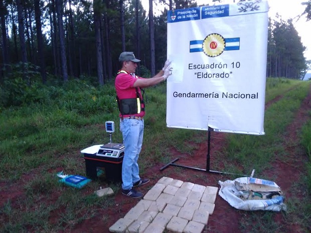 Gendarmería Nacional decomisó el domingo 25,640 kilogramos de marihuana que estaban ocultos en una bolsa de arpillera que llevaba un hombre por una zona rural conocida como paraje El Francés, en cercanías de Colonia Delicia.Personal de la Sección Núcleo dependiente del Escuadrón 10 "Eldorado" efectuaba patrullajes por caminos secundarios desde la ruta nacional 12 con dirección al río Paraná, cuando observaron a un hombre que transportaba sobre su hombro la bolsa en cuestión y que, al advertir la presencia de los uniformados, arrojó el bulto y emprendió una veloz huida, internándose en la espesura del monte. Ante la presencia de testigos, los funcionarios efectuaron el registro de la bolsa y contabilizaron 29 paquetes rectangulares de sustancia vegetal compacta, que en la prueba de narcotest arrojó resultado positivo para cannabis sativa (marihuana) con un peso total de 25,640 kilogramos. Intervino el Juzgado Federal de Eldorado, que orientó el decomiso del estupefaciente.Fotos: Prensa GN