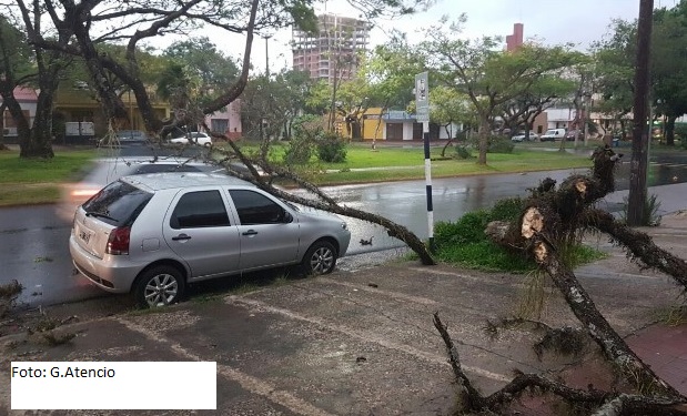 Árboles y gajos caídos en distintos puntos de la ciudad, calles anegadas y cortes de luz en la Zona Oeste formaban parte del panorama a primera hora de la tarde.Según la Oficina de Prevención de Riesgos Ante Desastres Naturales (Opad), dependiente de la Municipalidad capitalina, desde pasadas las 16:00 hasta las 21:30 habían caído 22 milímetros de agua, y el viento alcanzó ráfagas de hasta 55 kilómetros por hora.Entretanto, en Garupá también golpea con fuerza el temporal, con voladuras de chapas, caída de postes telefónicos y cortes del suministro eléctrico, entre otros daños. La tormenta se desató a las 16:00 y duró aproximadamente 15 minutos, afectando la zona de la exGarita y barrios Santa Helena y Santa Inés.Además, como se puede ver en la galería fotográfica, el viento voló un tinglado en la zona de Alto de González. El dueño dijo que no lo llegaron a estrenar y, en un minuto, la tormenta se lo llevó.Recomiendan precaución al circular por la ruta 105, por la presencia de ramas caídas, basura y mucho barro sobre el asfalto. Otra localidad afectada por el temporal que se abatió en toda la Zona Sur de Misiones fue Bonpland, donde incluso llegó a caer granizo:<p lang="es" dir="ltr">Granizo en <a href="https://twitter.com/hashtag/Bonpland?src=hash">#Bonpland</a> ( Video que nos envío José Feinfeser) <a href="https://t.co/ZqBHhrnFxu">pic.twitter.com/ZqBHhrnFxu</a></p>— Primera Edición (@primeraedicionw) <a href="https://twitter.com/primeraedicionw/status/790651603669946368">24 de octubre de 2016</a>Zona Centro y Alto UruguayEn Oberá, entretanto, se desató un fuerte chaparrón que dejó como efectos un importante corte de luz y varios barrios bajo agua, como Tres Esquinas y Villa Gunther. Y en San Vicente pasadas las 18:00 comenzó una violenta tormenta con vientos de hasta 60 kilómetros por hora y muchas descargas eléctricas.Desde media hora antes ya se había cortado la luz en la Capital de la Madera y en toda la región.Se anuncia que <a href="http://www.primeraedicion.com.ar/nota/232612/sigue-vigente-el-alerta-meteorologico-para-misiones-y-la-region.html">el mal tiempo se extendería hasta el miércoles</a>.