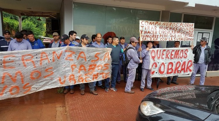 Son cerca de 100 los madereros que están en conflicto con la patronal y tras no llegar a un acuerdo en la sede del Ministerio de Trabajo (Eldorado), decidieron reclamar en el ingreso de la empresa. "La abogada de la patronal dijo que no tienen dinero para saldar las deudas", afirmó el dirigente gremial, Jorge Ríos, quien acompaña la medida de los obreros. Según comentó desde agosto que la empresa no paga los salarios e incluso todavía les adeudan el aguinaldo. No es la primera vez que los madereros empiezan una medida de fuerza, ya que el conflicto comenzó a principio de año y parece no tener una solución.
