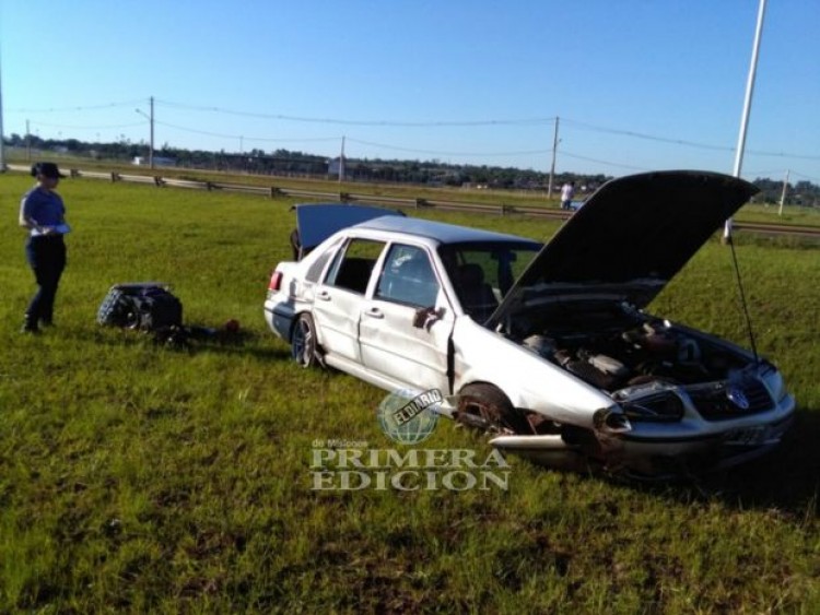 Un Volkswagen Santana circulaba en sentido Posadas-Iguazú cuando, al intentar trasponer la rotonda de la ruta costera en inmediaciones del barrio A3-2, se salió de su carril, subió al guardarrail y volcó espectacularmente.Raúl M. (30) conducía el automóvil e iba acompañado por Ángela S. (29) y Enzo B. (20).La mujer mencionada sufrió lesiones y fue trasladada al hospital Ramón Madariaga para su atención. Personal de la Policía Científica y de la comisaría seccional Décima trabajaron en el lugar.