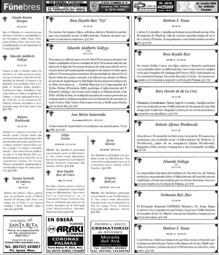 Fúnebres del 2 de noviembre de 2016