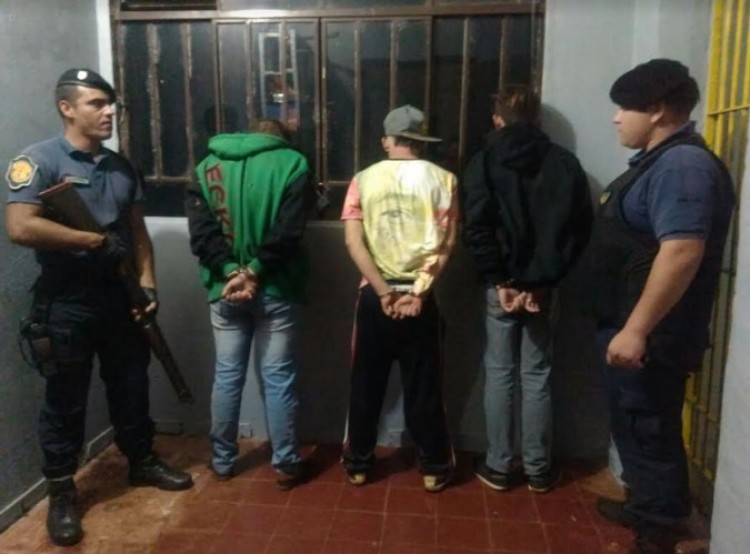Ayer aproximadamente a las 20 hs Diego C.H., un comerciante colombiano de 47 años, estaba en su casa de Villa Alta cuando irrumpieron en su domicilio al menos dos hombres encapuchados, uno de ellos portando arma de fuego.Los desconocidos le sustrajeron a la víctima un bolso con 500 pesos y le efectuaron un disparo con arma de fuego, para luego darse a la fuga. El denunciante resultó con heridas en abdomen, tórax y miembros inferiores.El herido, con cuadro estable, fue derivado inmediatamente al hospital Samic de Eldorado y se aguarda nuevo parte médico. Operativo rural y detenciones Efectivos de la comisaría de San Antonio, junto a sus pares de las divisiones UR-XII (Irigoyen) montaron un intenso operativo por área rural, al límite con Brasil. Aproximadamente a las 22 hs, en un sector de picada, utilizada ilegalmente como paso fronterizo, los policías  capturaron a Eliando A. (36), de nacionalidad brasilera, y Luciano R. (18), oriundo de la zona,. Tenían en su poder una bolsa conteniendo un teléfono celular, documentaciones y un cuchillo tipo sevillana.Momentos después, en un sector casi inaccesible por la espesa vegetación, los uniformados atraparon a Simeón A. (20), domiciliado en San Antonio. Este joven llevaba consigo un arma de fuego 9 mm (además de 17 cartuchos percutidos) y dinero en efectivo.
