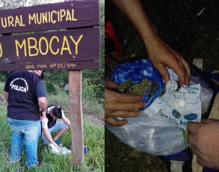 Cerca de las 19:00 del jueves, los policías recorrían la zona del arroyo Mbocay cuando dos hombres, al notar su presencia, salieron a correr y abandonaron una mochila. Al ser requisada, hallaron una bolsa de polietileno azul que contenía 36 gramos de marihuana, y un tubo con 23 envoltorios de la sustancia derivada del clorhidrato de cocaína (crack) en pequeñas cantidades.
