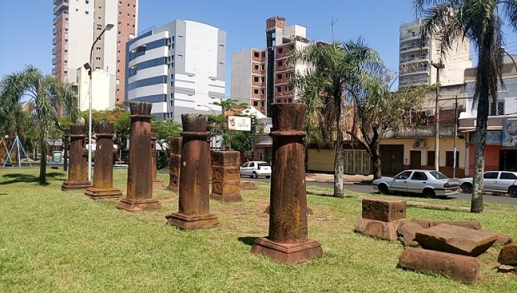 lazoletas situadas en la avenida Roque Pérez (actual Comandante Guacurarí), entre calles Buenos Aires y Rivadavia de esta ciudad. En la Plazoleta, los bloques de las columnas y los fustes a las bases, están fijados con cemento, en caso de desear ubicarlas en otro lugar perderían sus partes, salvo que se efectúe un túnel debajo de las mismas y las levante”.