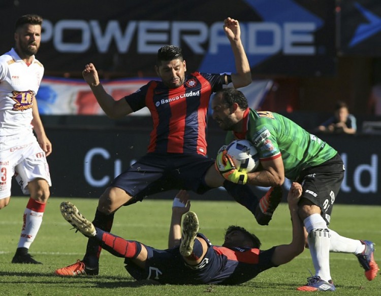 En un partido repleto de jugadas polémicas y decisiones contrariadas del árbitro Darío Herrera, San Lorenzo se quedó este domingo con el clásico ante Huracán por 2 a 0 para estirar su paternidad y acercarse a cinco puntos del líder de Primera División, Estudiantes de La Plata.Por la novena fecha del torneo, y sin desplegar un juego tan vistoso, el "Ciclón" se impuso gracias a los goles del uruguayo Martín Cauteruccio, a los 27 minutos del primer tiempo, y Sebastián Blanco, cuando promediaba el complemento.Antes del segundo tanto, el capitán Néstor Ortigoza falló un penal inexistente (por mano involuntaria) que fue atajado por Marcos Díaz para Huracán, que luego se quedó con diez hombres por la expulsión de Patricio Toranzo, apenas un minuto después de su ingreso por un tropiezo que el árbitro interpretó increíblemente como agresión.San Lorenzo llegó a 18 puntos, igualó la línea de Racing y descontó dos unidades respecto del líder Estudiantes de La Plata, justo antes de una seguidilla que tendrá a Independiente y Boca.Al conjunto dirigido por Diego Aguirre se le simplificó todo a partir de la roja a Toranzo -por un supuesto "pisotón" a Fernando Belluschi-, aunque se topó con la inmensidad de Marcos Díaz que le impidió ampliar la ventaja.Fuente: Noticias Argentinas