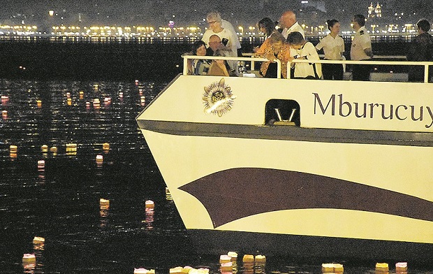 Los artistas de PosArt, cumplieron el sueño de iluminar el río Paraná con mil candiles encendidos en la muestra que se llamó: “Lo que sueñes e imagines es parte de esta obra”.El evento denominado “Land Art” o Arte efímero se realizó en la noche del sábado frente a la antigua estación de trenes, en el cuarto tramo de la costanera capitalina.Participaron de esta muestra alumnos, colegas y amigos de la galería de arte, quienes subieron a bordo del Catamarán Mburucuyá Connection para formar parte de esta fantástica experiencia.Además, los alumnos de la Facultad de Humanidades hicieron entrega a los transeúntes del texto del poeta Rolo Capaccio, quien a través de sus palabras explicó la temática de la obra. La idea nació por parte del artista Engel y un grupo de colegas quienes decidieron realizar la muestra “Land Art” que utilizó el marco natural del majestuoso río como soporte, haciendo una conjugación entre los cuatro elementos que conforman el universo: la tierra, el agua, el aire y el fuego, así como pensaban los antiguos griegos. En esta oportunidad se utilizaron las balsitas que fueron hechas de papel que simbolizaron a la tierra, y los demás elementos como el agua, el aire y el fuego representado en las luces de los candiles que iluminaron el río Paraná para el asombro de los visitantes que se hicieron presentes.El artista Engel destacó que la sensación que trasmite el arte efímero es una sensación muy personal donde cada espectador tuvo una sensación y experiencia distinta. La idea de iluminar el Paraná por medio de mil candiles surgió en el 2003 cuando el artista junto a los alumnos de la carrera de Arte y Diseño del Instituto Montoya realizaron esta experiencia enriquecedora. Trece años más tarde, los artistas de la capital misionera pudieron rememorar un acontecimiento único, conmovedor e innovador.Fotos: M.Colman y Gentileza PosArt
