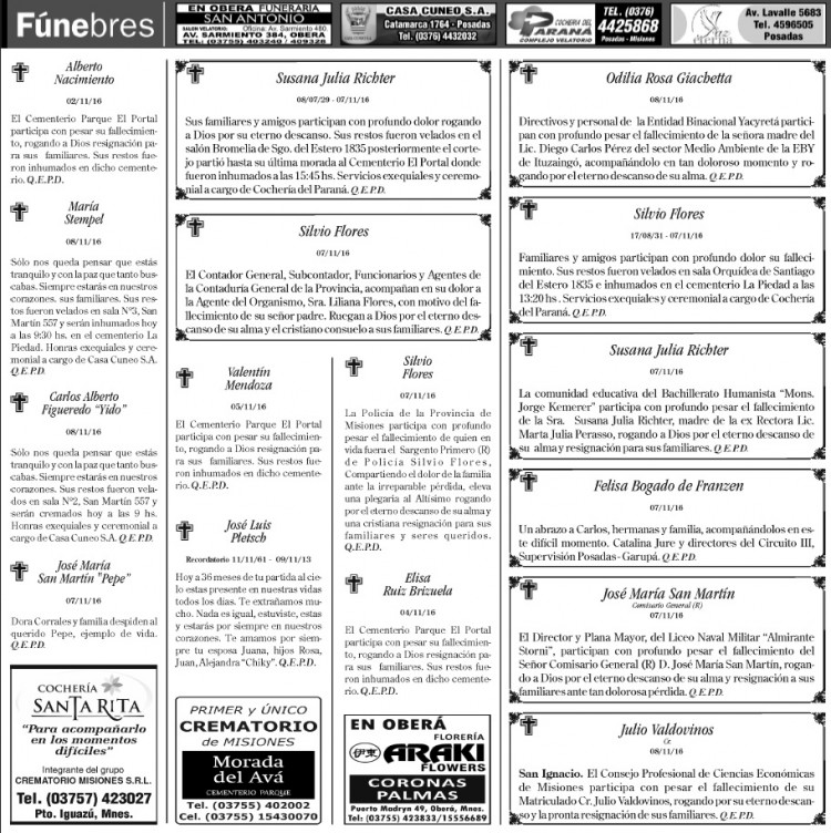 Fúnebres del 9 de noviembre de 2016