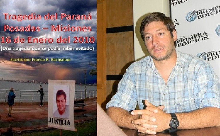 Con el caso en manos de la Corte Suprema, y a la espera de un veredicto que siente precedentes en la Justicia Argentina, Franco Bacigalupi, hermano de Mauro -una de las víctimas de la Tragedia del Paraná- sacó a la luz un libro de título homónimo que expone los hechos y la investigación al respecto para que “no vuelva a pasar nunca más”, señaló el autor en diálogo con PRIMERA EDICIÓN. El exdirector de seguridad acuática de la provincia explicó a este Diario algunas de las impresiones que buscó poner de manifiesto en la obra acerca de los hechos que golpearon fuertemente a la sociedad en aquel trágico 16 de enero de 2010.“Traté de poner en orden todo lo acontecido en esos días, como familia de Mauro. De hecho, en la primera parte me dediqué a contar el calvario de más de 20 días después de la tragedia y de búsqueda de las víctimas. Fueron un montón de emociones encontradas. En la primera parte del libro hablo mucho de la esperanza que teníamos de encontrar con vida a nuestros seres queridos, las decepciones cuando se hallaban los cuerpos y demás…”, recordó.Bacigalupi también reconoció a todas aquellas personas que -de una u otra manera colaboraron con la “puesta en orden de los sucesos, porque incluso no recordaba algunos de ellos. Es como que algunas situaciones estaban muy bien guardadas en la memoria. La idea fue relatar, para que la gente comprenda lo que pasamos los familiares y porqué se pedía Justicia”.El texto se encuentra disponible en formato digital, se distribuye gratis entre quienes lo solicitan por correo electrónico a [email protected]ó Franco, por otra parte que, pese a que no está a la venta, le plantearon la posibilidad de abonar el monto de la obra, pero como él no desea hacer ningún tipo de negocios accedió a que quienes deseen hacer donaciones las realicen directamente a la La Asociación civil Creación, de ayuda al niño con cáncer de Misiones. Algunos hechosEn la segunda parte del libro Franco Bacigalupi cuenta lo difícil que resultó, en todo sentido, la investigación del caso.“Las fallas que hubo en la organización del evento y a la par tratar de colaborar con la investigación en el juzgado. No hay que olvidar que la causa recayó en un juzgado de instrucción del foro provincial, donde las dificultades fueron que los fiscales no nos llamaban a declarar, por ejemplo”. La obra, es dinámica con ilustraciones, muchas fotografías y registros periodísticos, “para que la gente comprenda qué pasó realmente”, especificó. Bacigalupi también dedica gran parte a detallar cómo se puedo haber evitado para que no vuelva a ocurrir”, sostuvo. “Dejé de ser hermano para ser rescatista”El libro “Tragedia del Paraná” se terminó de escribir hace dos años. En todo este tiempo, su autor, Franco Bacigalupi se planteó más de una vez no hacerlo público.“Hoy (por ayer) estuve mandando correos electrónicos con el enlace del libro y la devolución de la gente ha sido sorprendente. Me contaban cómo les llegó y eso me hace pensar el objetivo que nos planteamos, que era poner en conocimiento de la población los momentos desgarradores que vivimos. Siempre digo lo mismo y es lo que marcó mi vida: a mí me tocó dejar de ser hermano para ser rescatista y psicológicamente fue algo muy fuerte, eran emociones que me quebraban cuando debía salir a las 7 de la mañana y volver a casa a las 7 de la tarde sin nada”. Franco Bacigalupi se desempeñó durante cuatro años en la función pública como Director Provincial de Seguridad Acuática, promovió la ley al respecto y si bien, hasta la actualidad la mayoría de los municipios no adhirieron, explicó siente “que hicieron todo lo que se pudo y algunos avances vi, aunque no todos los que son necesarios y por eso preferí tomar un tiempo para ver qué pasa con el apoyo que necesita la dirección, que tiene un rol importante pero sin peso en otros ámbitos”, lamentó.