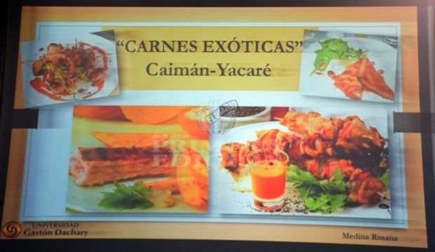 Organizado por la carrera de Nutrición de la Universidad Gastón Dachary (UGD), se realizó el martes a la noche la exposición y degustación de “Nuestras carnes”. Conquistar el paladar argentino con un sabor desconocido es un desafío enorme porque está muy arraigado el consumo de la carne de vaca y pollo. Aunque cuesta introducir otros tipos de carnes, ya se comercializan carnes exóticas gourmet en hoteles, restaurantes y supermercados. Estas carnes se caracterizan por sus componentes nutricionales y características organolépicas únicas. Por ello, con el propósito de promocionar los conocimientos adquiridos por los alumnos en la materia y su relación con las costumbres de consumos de los productos regionales en cuanto a carnes exóticas, menudencias, víscera y pescados, la UGD organizó “Nuestras carnes” donde se presentaron platos de carnes exóticas y vinos para acompañarlos, a cargo de las docentes Graciela Giménez y Ana Estrada, ambas de la cátedra Técnicas dietéticas y arte culinario II.
